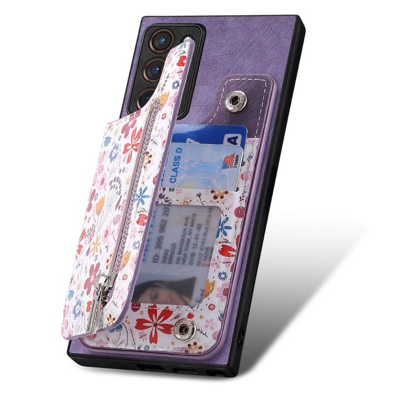 For Samsung Galaxy Note20 Retro Painted Zipper Wallet Back Phone Case(Purple)