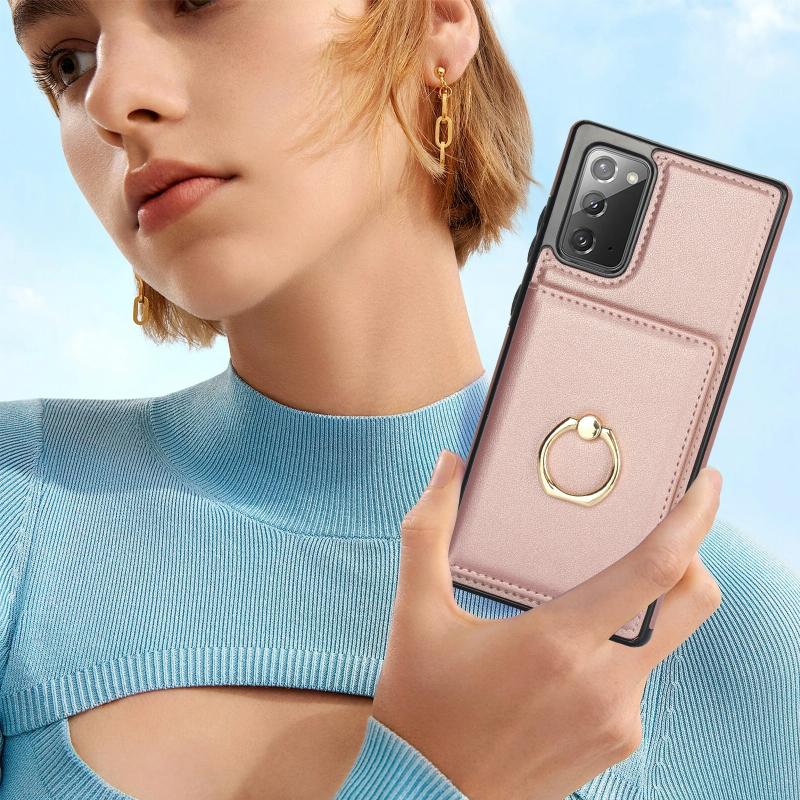 For Samsung Galaxy Note20 RFID Anti-theft Card Ring Holder Phone Case(Rose Gold)