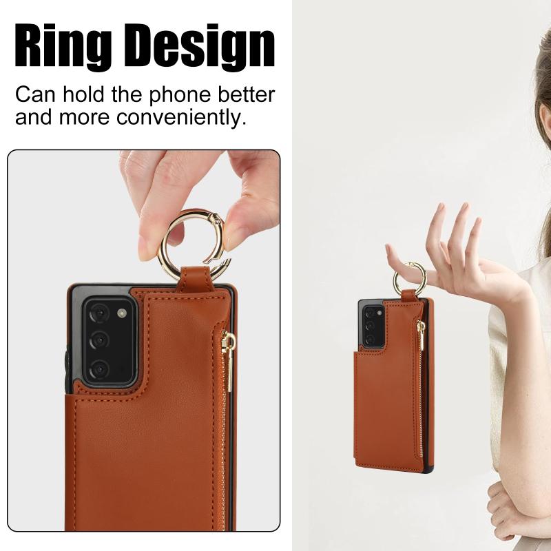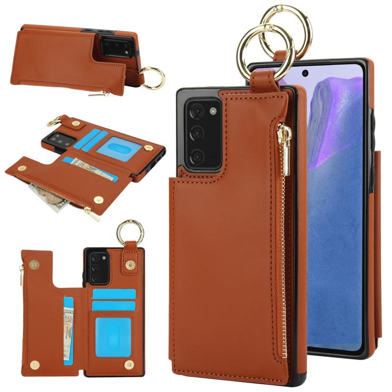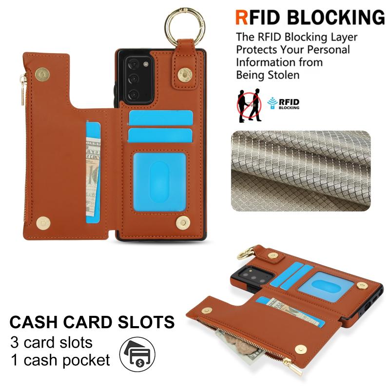 For Samsung Galaxy Note20 RFlD Anti-theft Double Buckle Ring Zipper Card Phone Case(Brown)