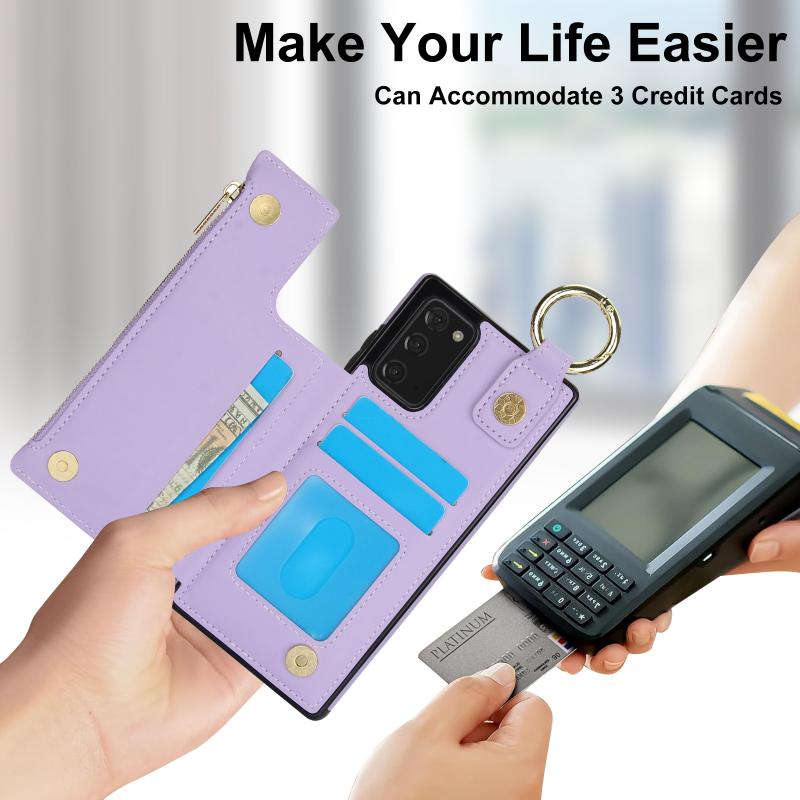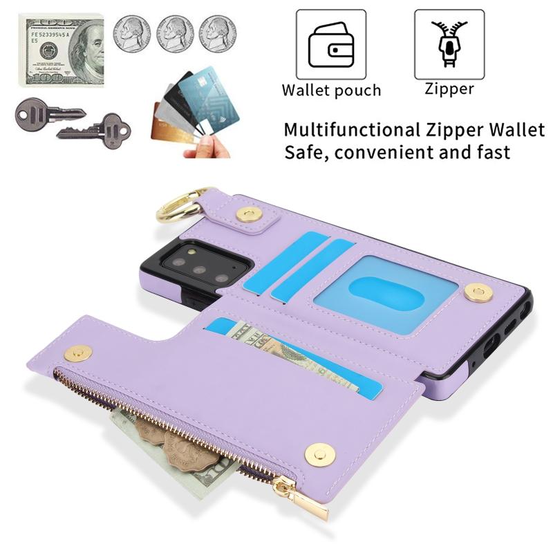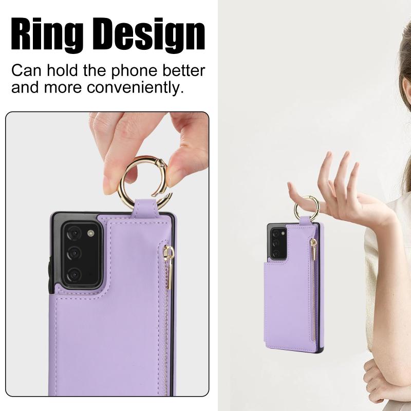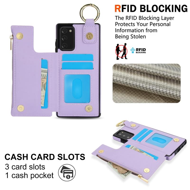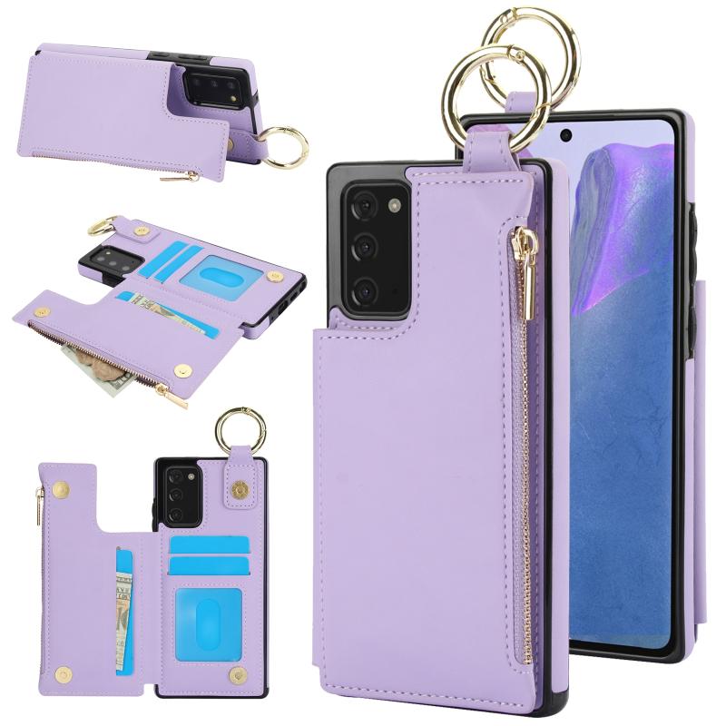 For Samsung Galaxy Note20 RFlD Anti-theft Double Buckle Ring Zipper Card Phone Case(Purple)