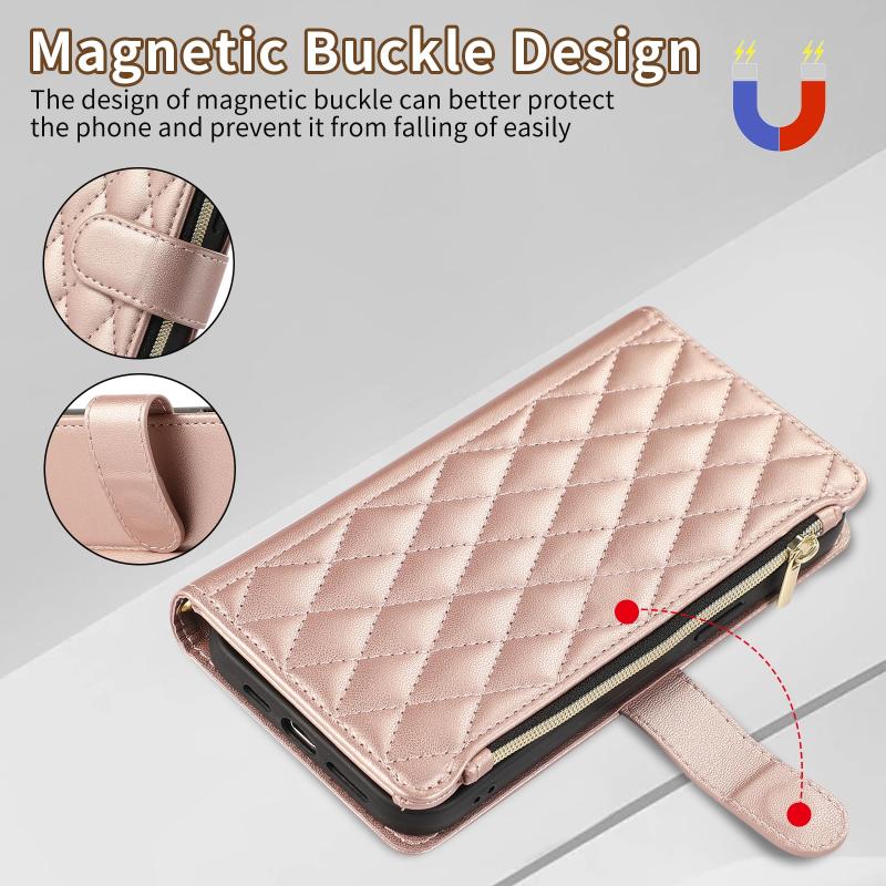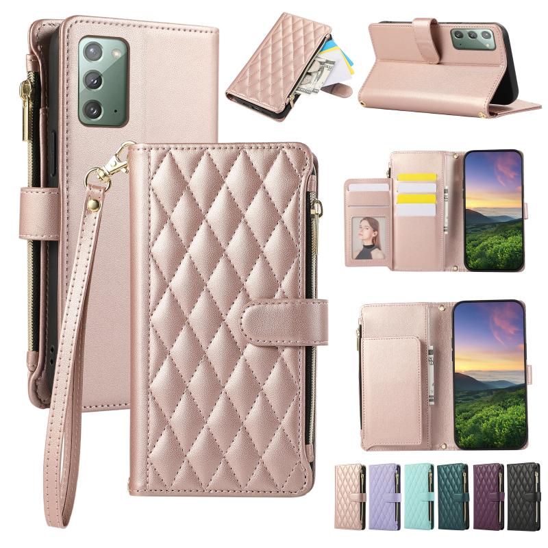 For Samsung Galaxy Note20 Rhombic Zipper Wallet Leather Phone Case(Rose Gold)