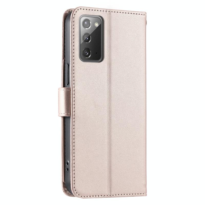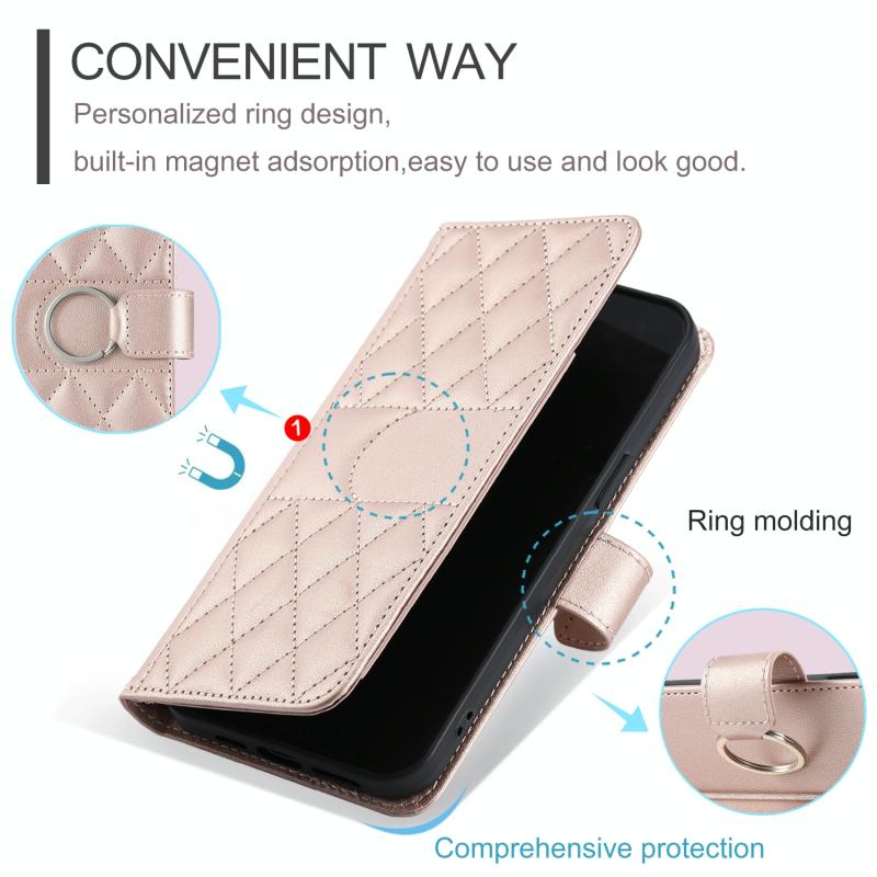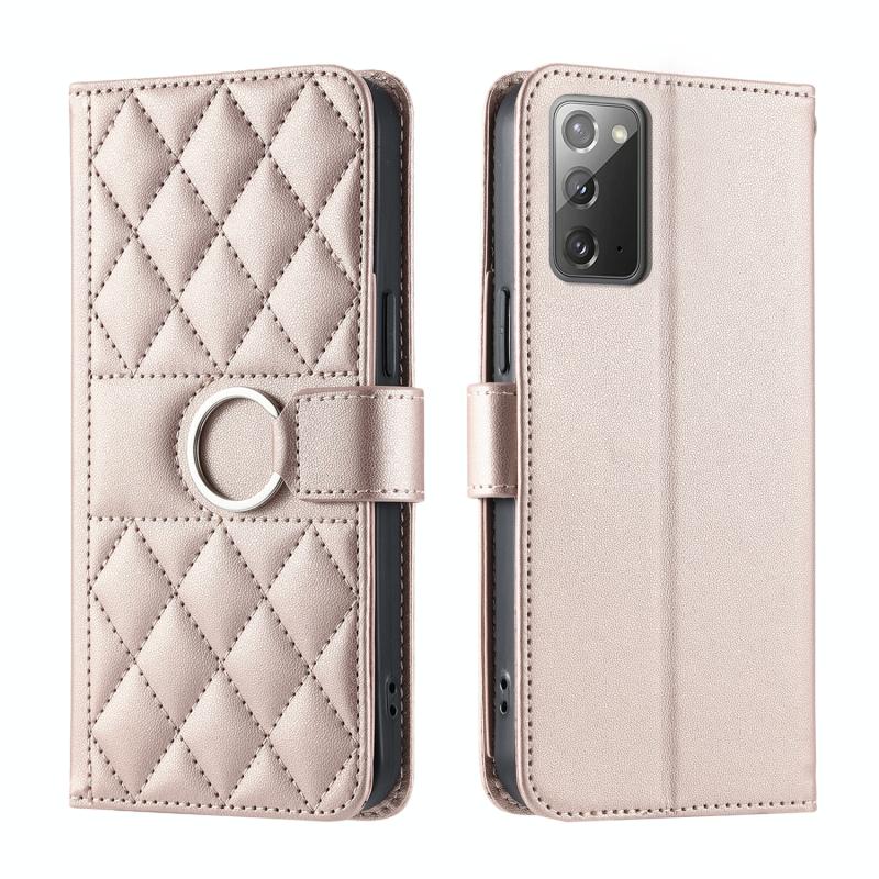 For Samsung Galaxy Note20 Ring Buckle Rhombic Leather Phone Case(Rose Gold)