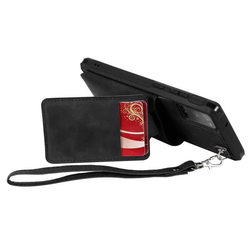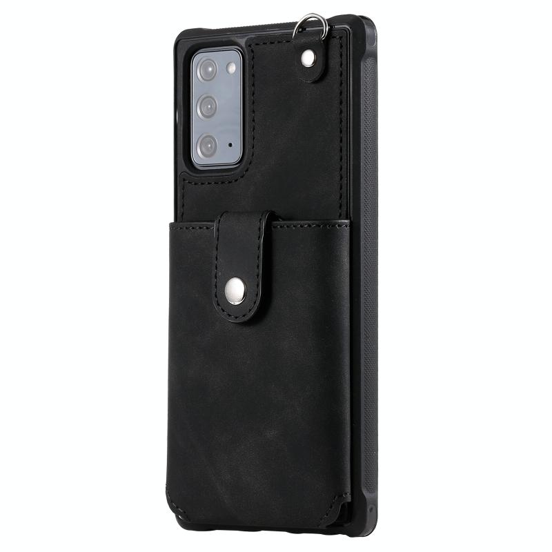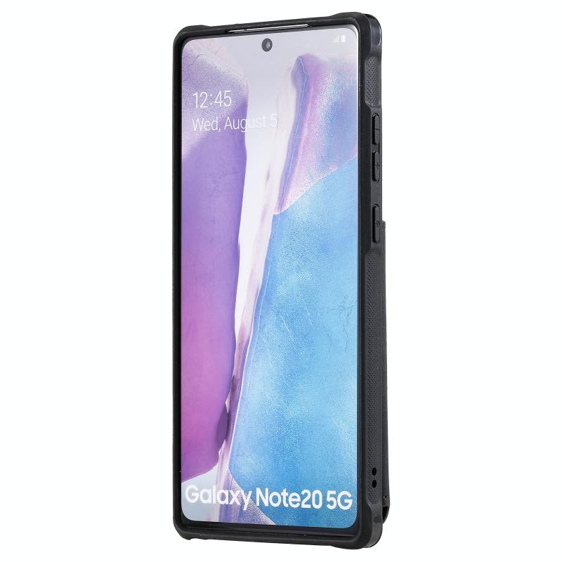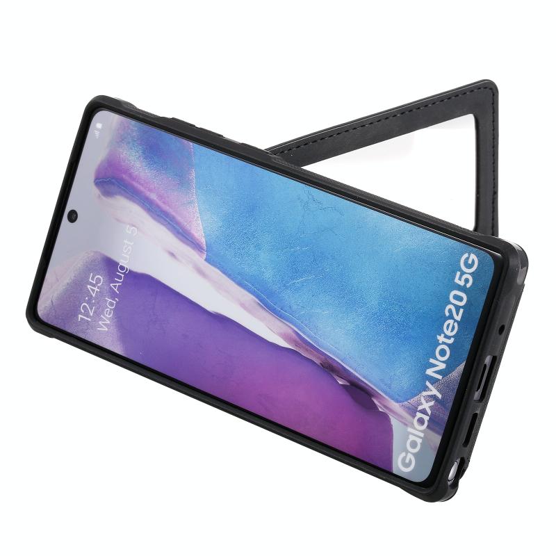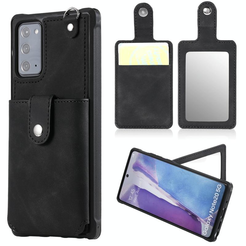 For Samsung Galaxy Note20 Shockproof Protective Case with Mirror & Card Slot & Short Lanyard(Black)