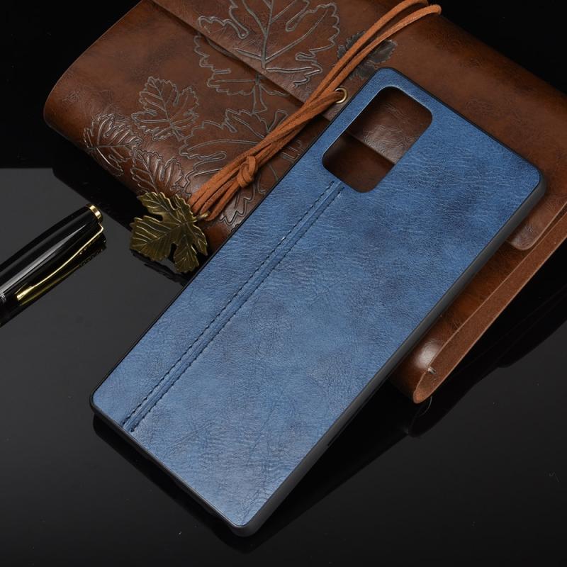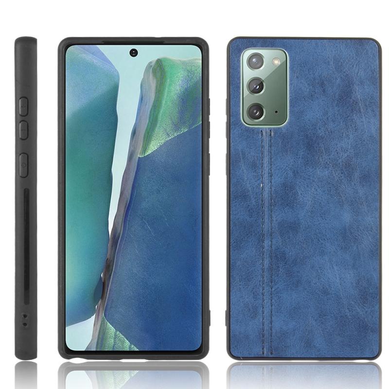 For Samsung Galaxy Note20 Shockproof Sewing Cow Pattern Skin PC + PU + TPU Case(Blue)