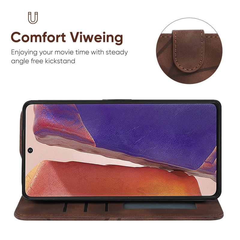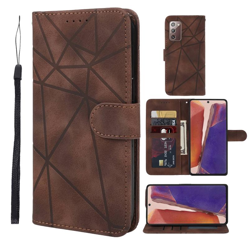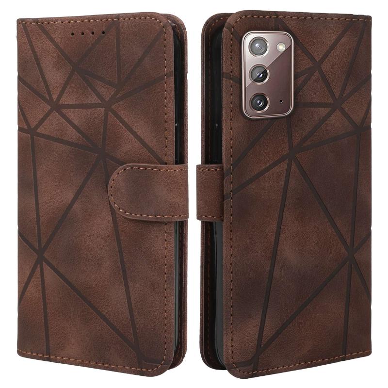 For Samsung Galaxy Note20 Skin Feel Geometric Lines Leather Phone Case(Brown)