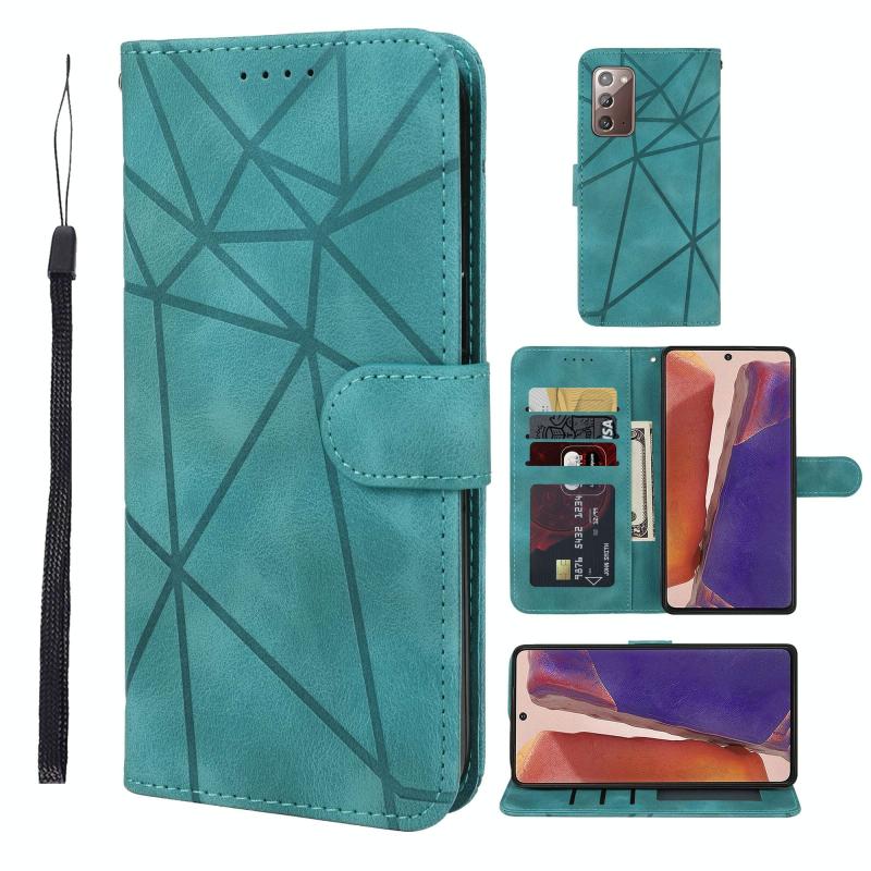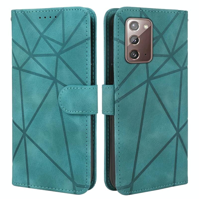 For Samsung Galaxy Note20 Skin Feel Geometric Lines Leather Phone Case(Green)