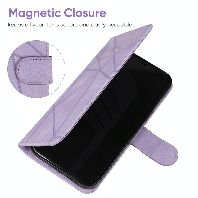 For Samsung Galaxy Note20 Skin Feel Geometric Lines Leather Phone Case(Purple)