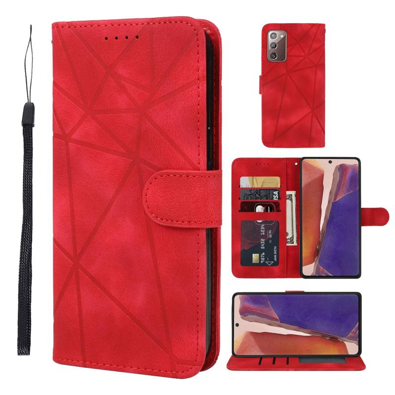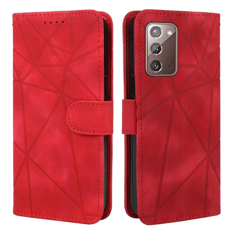 For Samsung Galaxy Note20 Skin Feel Geometric Lines Leather Phone Case(Red)