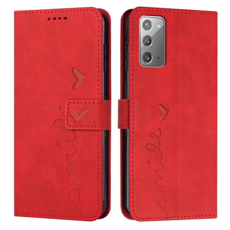 For Samsung Galaxy Note20 Skin Feel Heart Pattern Leather Phone Case(Red)