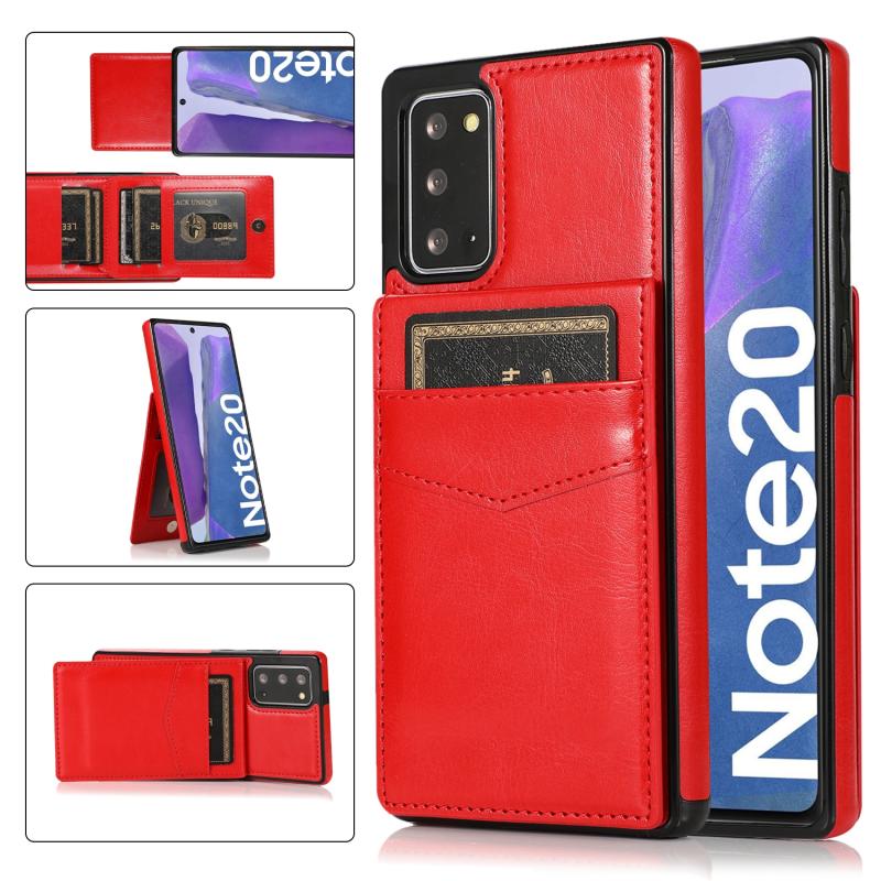For Samsung Galaxy Note20 Solid Color PC + TPU Protective Case with Holder & Card Slots(Red)