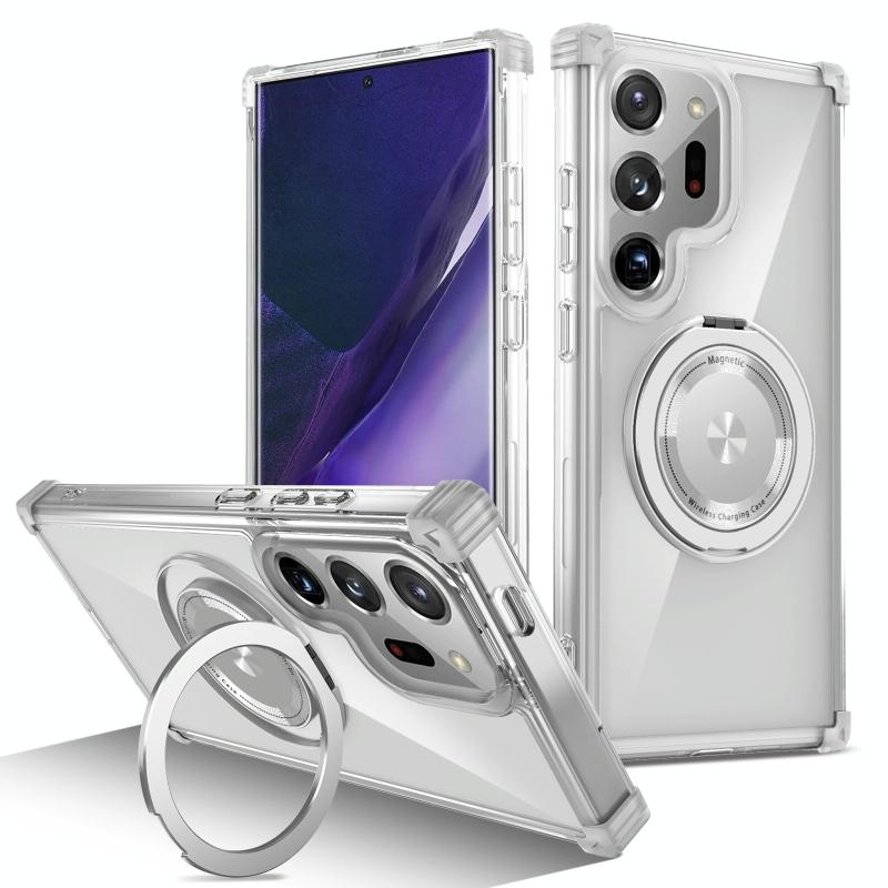 For Samsung Galaxy Note20 Ultra 5G Gold Shield CD Pattern MagSafe Magnetic Phone Case with Rotating Stand(Transparent)