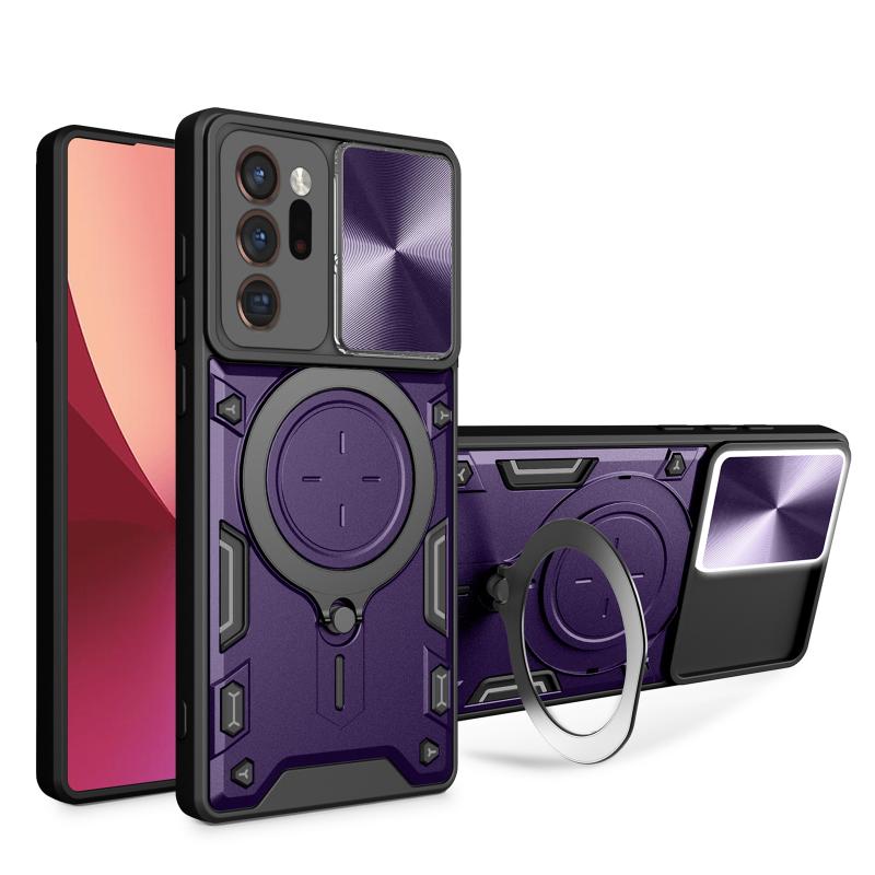 For Samsung Galaxy Note20 Ultra CD Texture Sliding Camshield Magnetic Holder Phone Case(Purple)