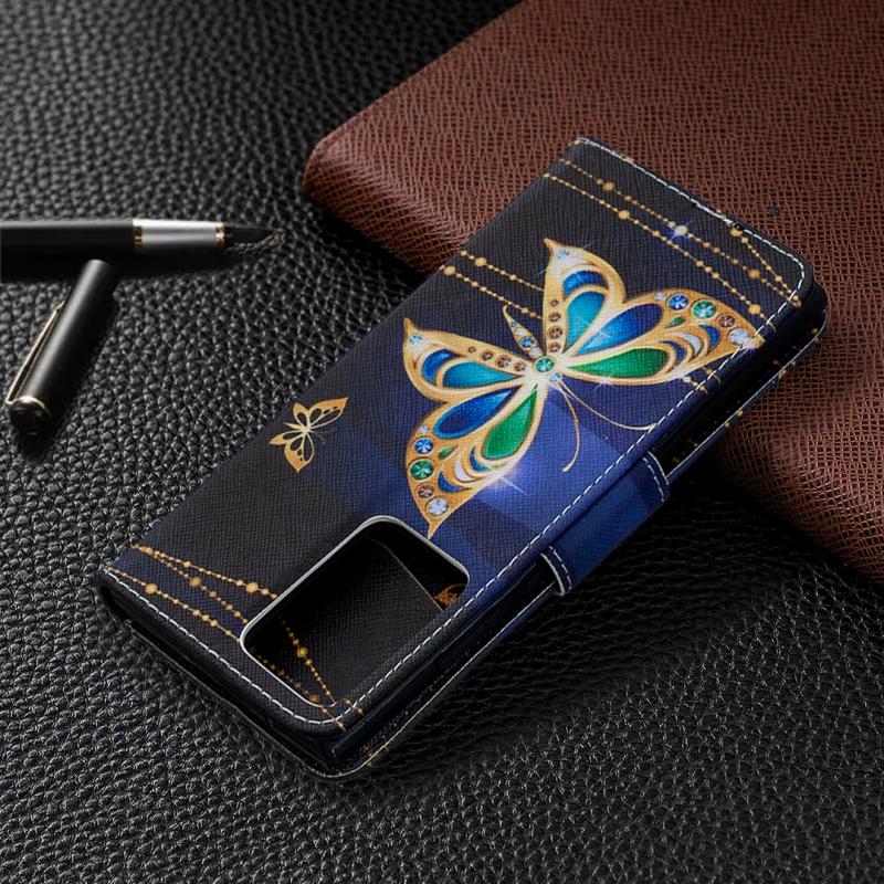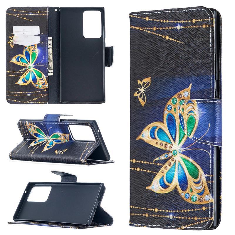 For Samsung Galaxy Note20 Ultra Colored Drawing Pattern Horizontal Flip Leather Case with Holder & Card Slots & Wallet(Big Butterfly)