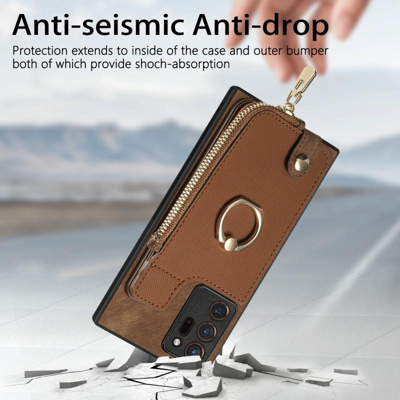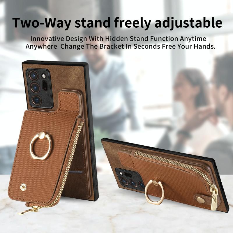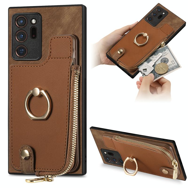 For Samsung Galaxy Note20 Ultra Cross Leather Ring Vertical Zipper Wallet Back Phone Case(Brown)