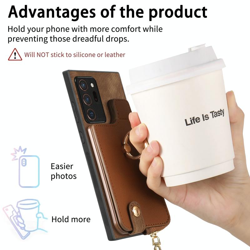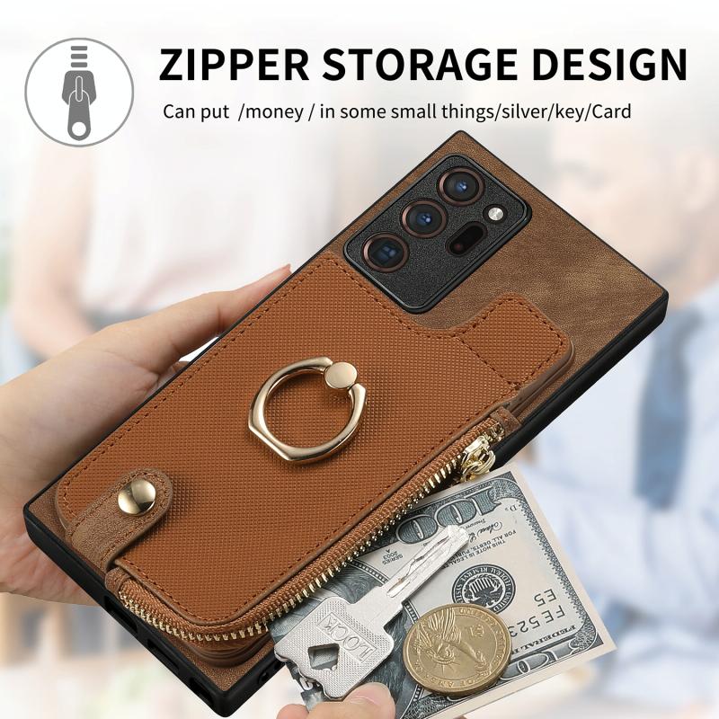 2. Zipper Wallet Function: The leather case is equipped with card slots for placing cards and a small amount of cash.