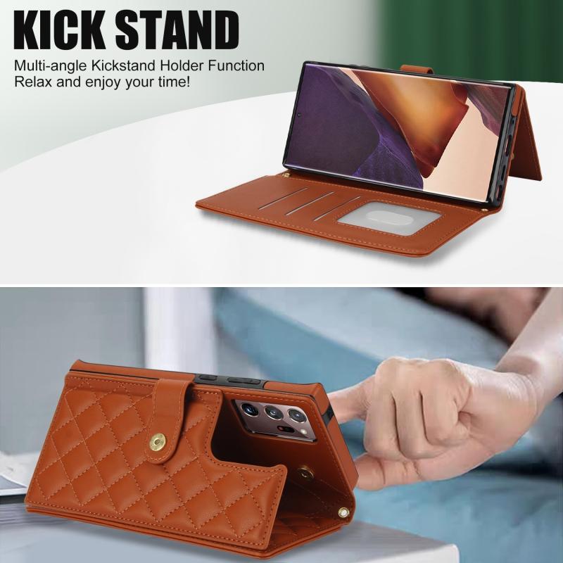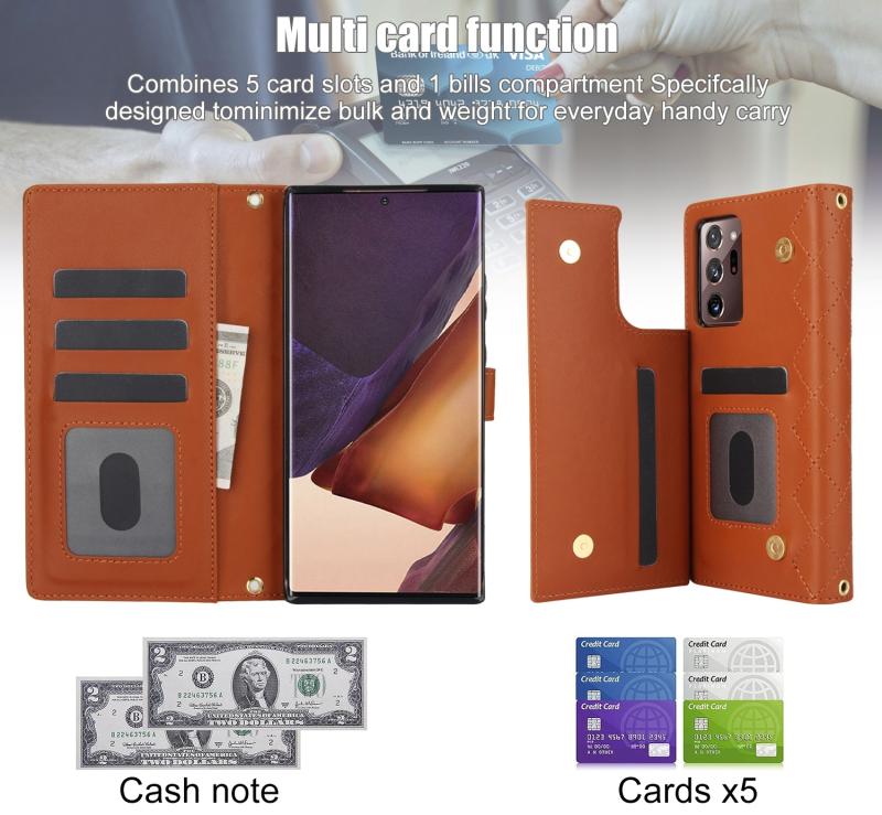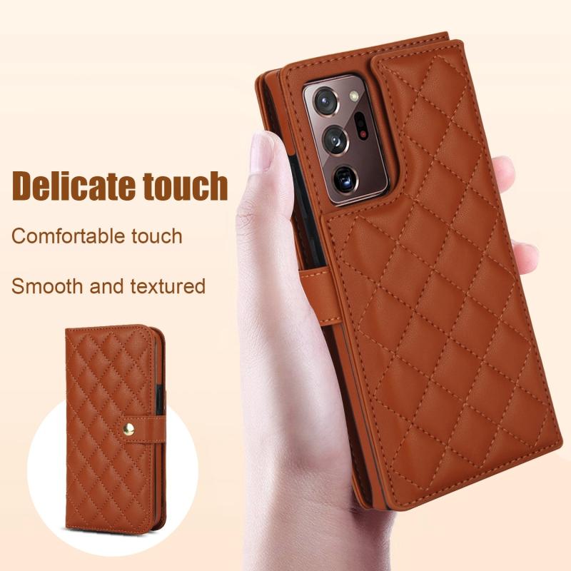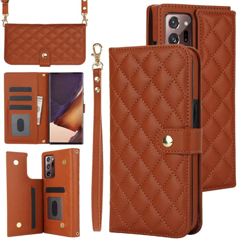 For Samsung Galaxy Note20 Ultra Crossbody Multifunction Rhombic Leather Phone Case(Brown)