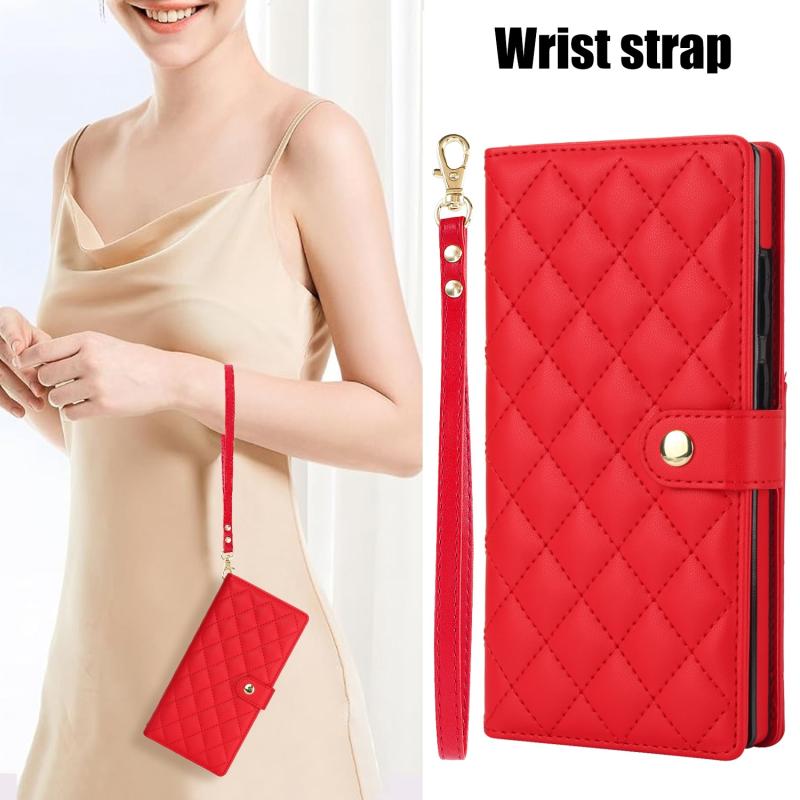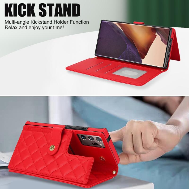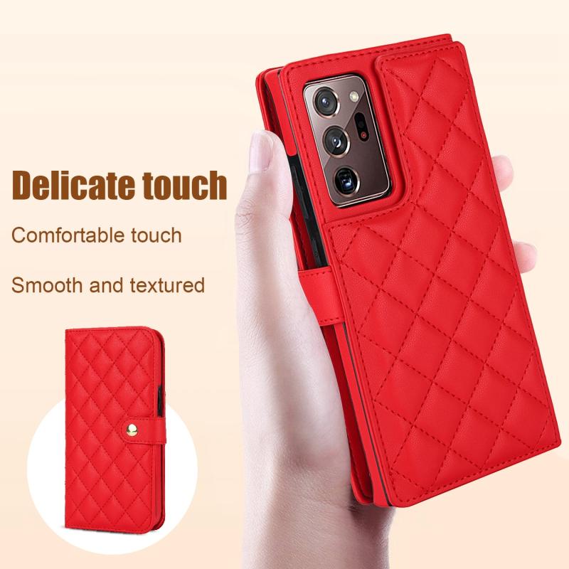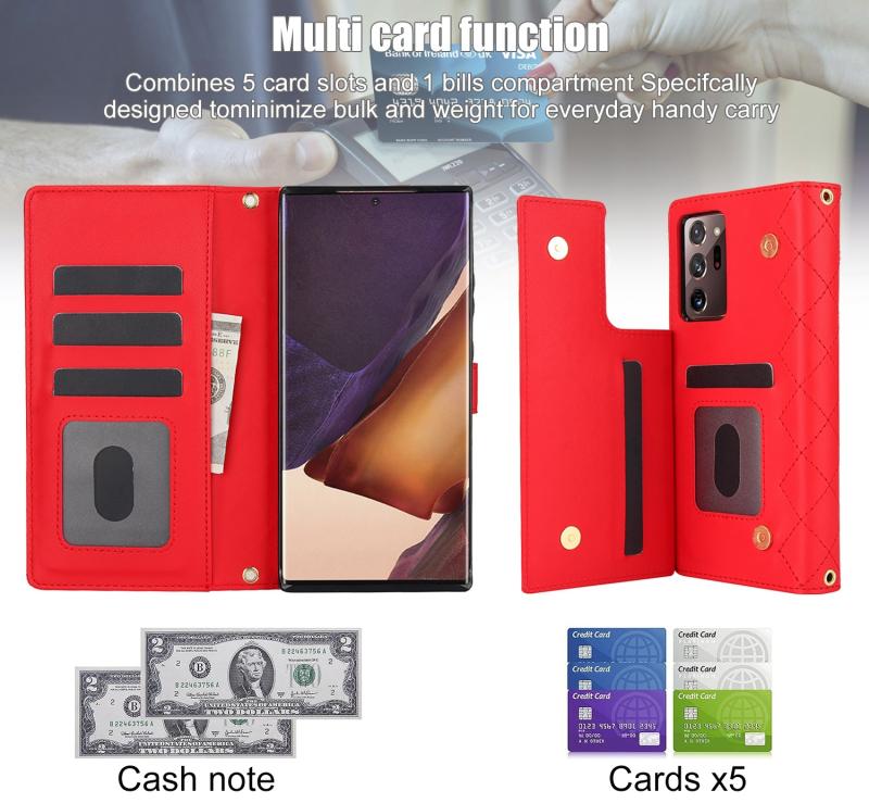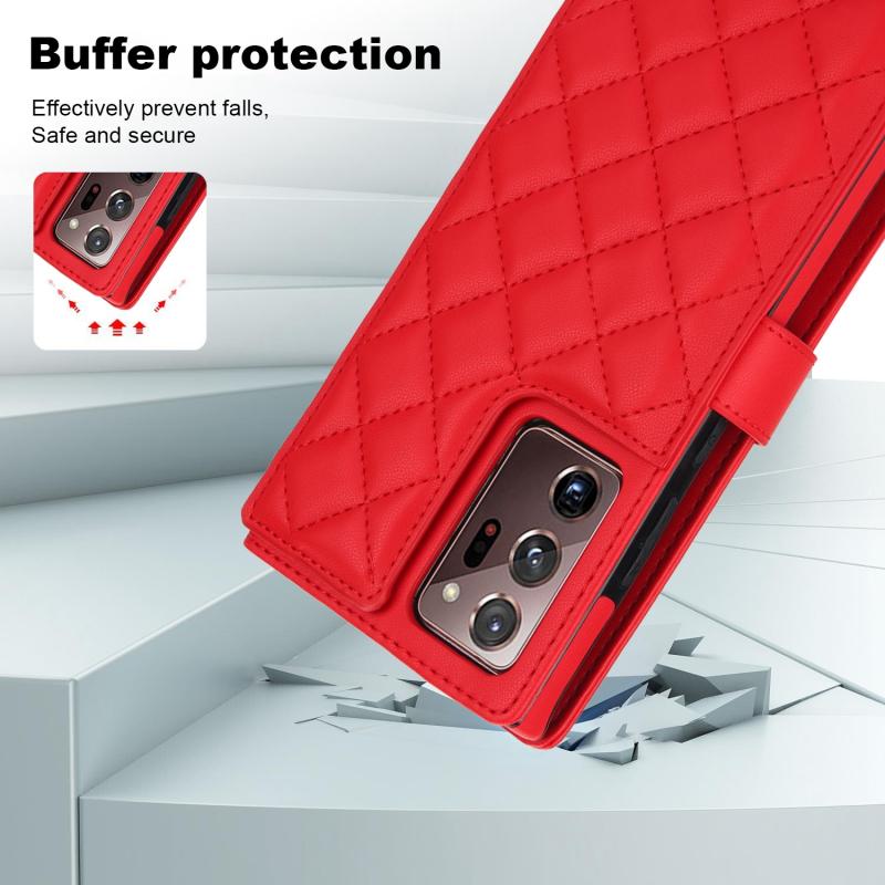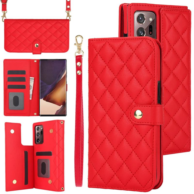 For Samsung Galaxy Note20 Ultra Crossbody Multifunction Rhombic Leather Phone Case(Red)