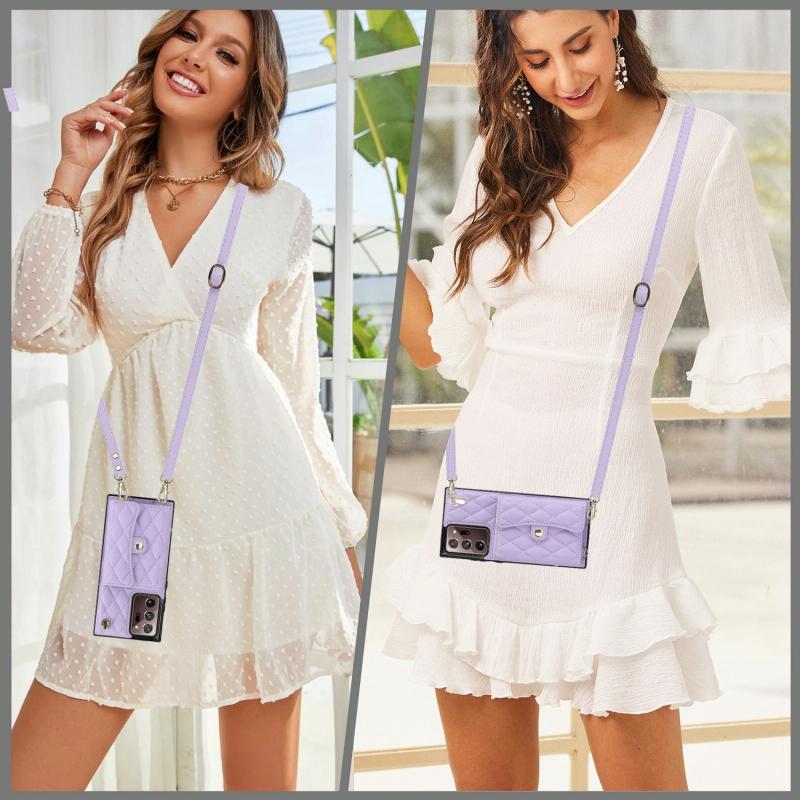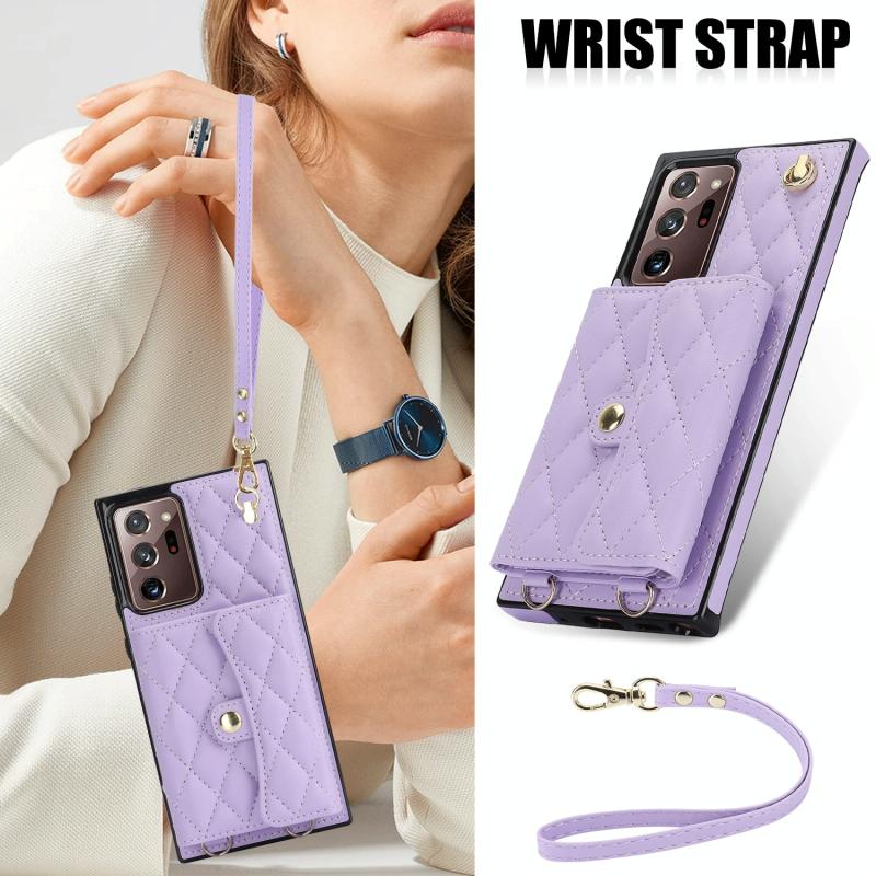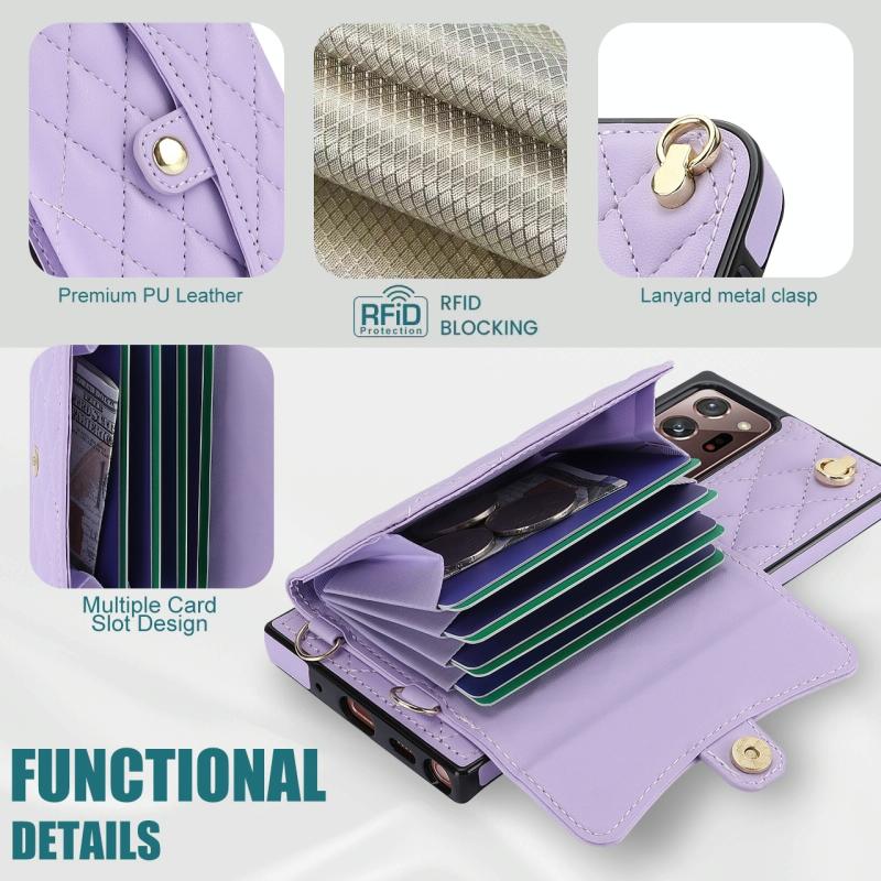 For Samsung Galaxy Note20 Ultra Crossbody Rhombic Horizontal Wallet Leather Phone Case(Purple)