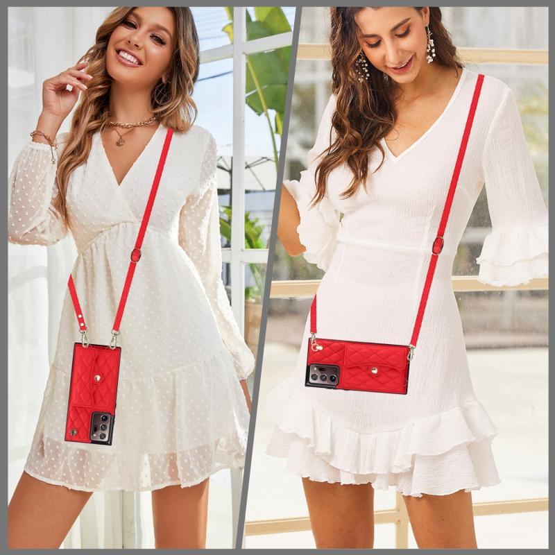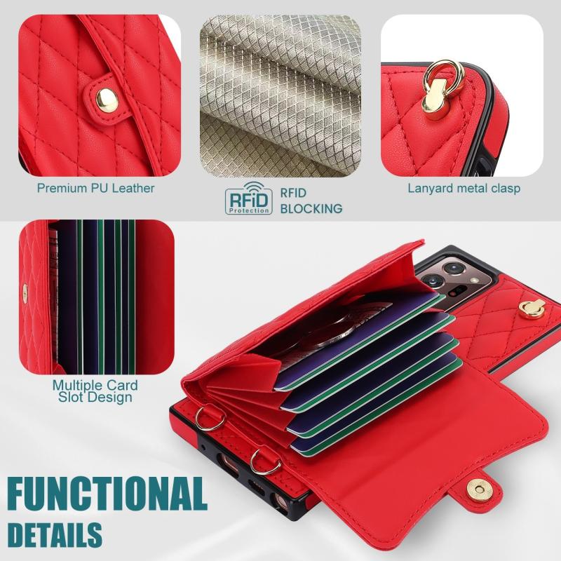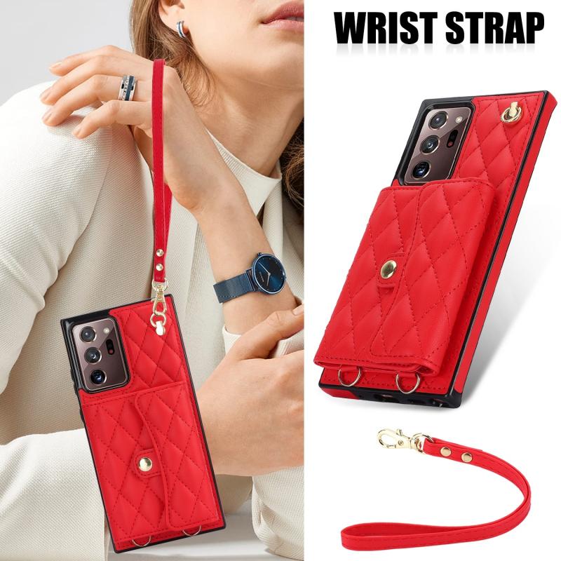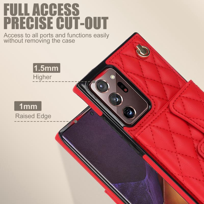 For Samsung Galaxy Note20 Ultra Crossbody Rhombic Horizontal Wallet Leather Phone Case(Red)