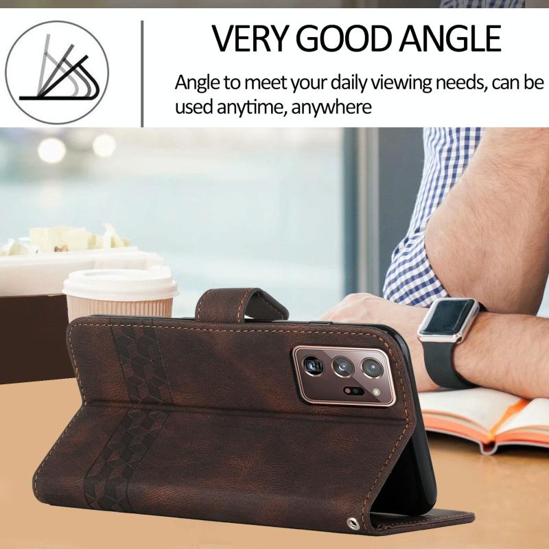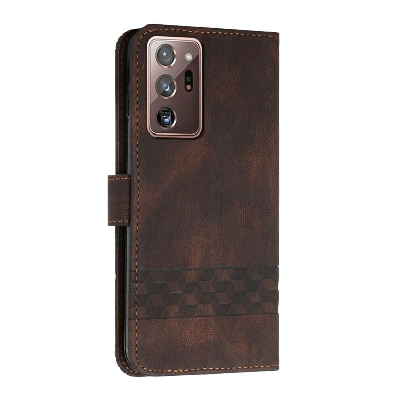 For Samsung Galaxy Note20 Ultra Cubic Skin Feel Flip Leather Phone Case(Dark Coffee)