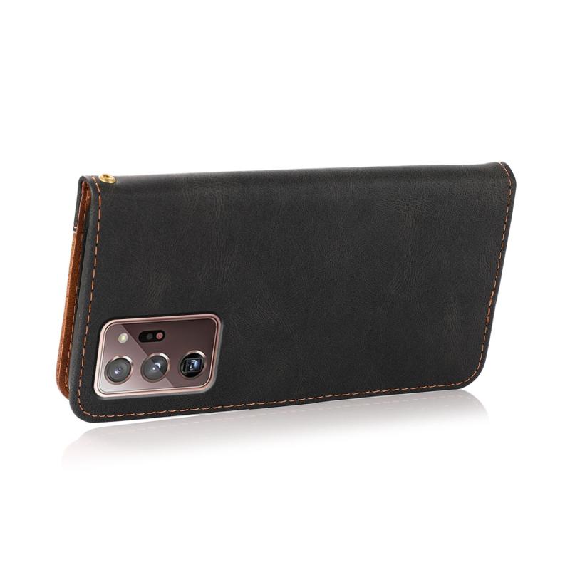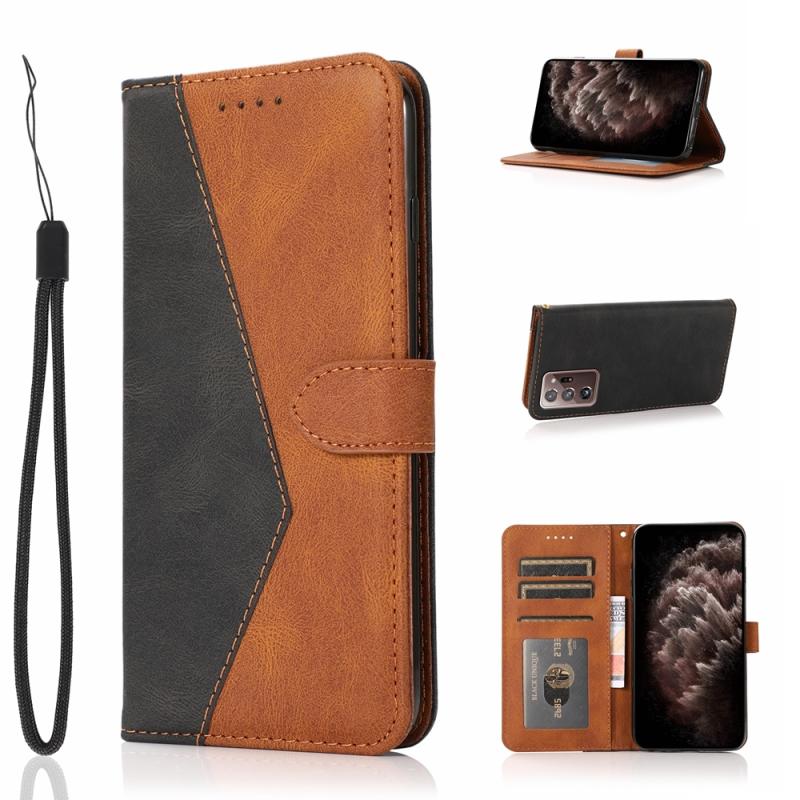 For Samsung Galaxy Note20 Ultra Dual-color Stitching Leather Phone Case(Black Brown)