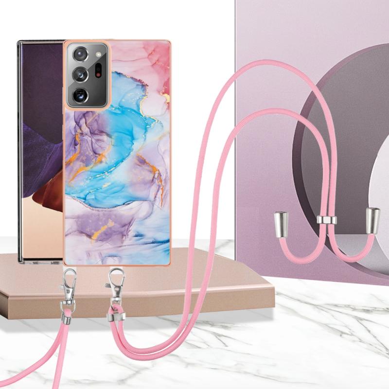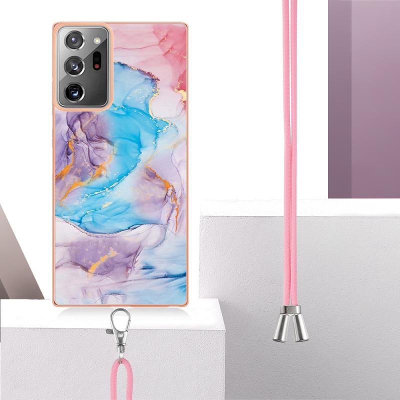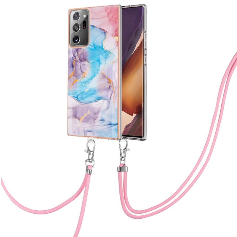 For Samsung Galaxy Note20 Ultra Electroplating IMD TPU Phone Case with Lanyard(Blue Marble)