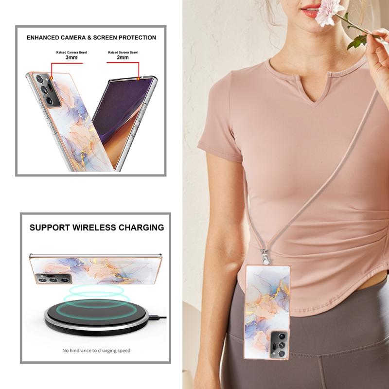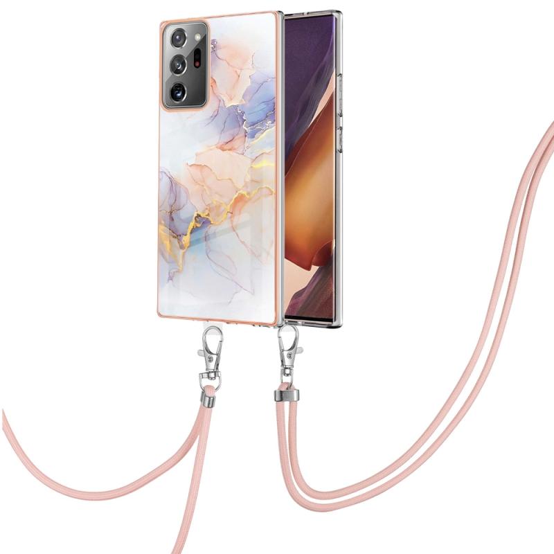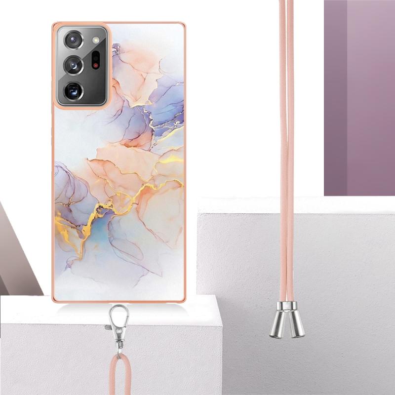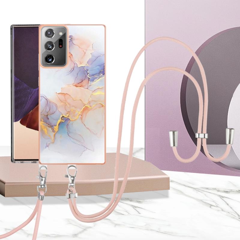 For Samsung Galaxy Note20 Ultra Electroplating IMD TPU Phone Case with Lanyard(White Marble)