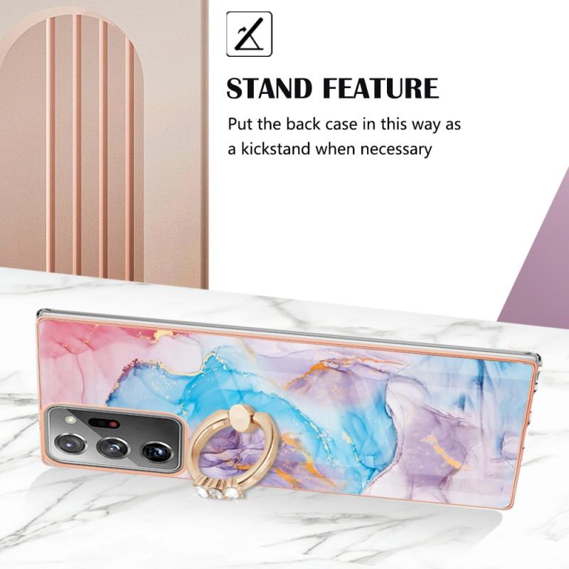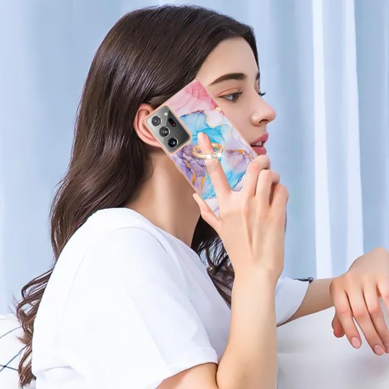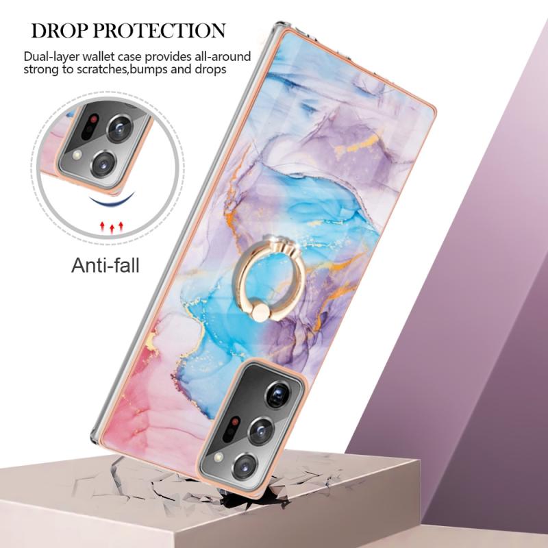 For Samsung Galaxy Note20 Ultra Electroplating IMD TPU Phone Case with Ring(Blue Marble)