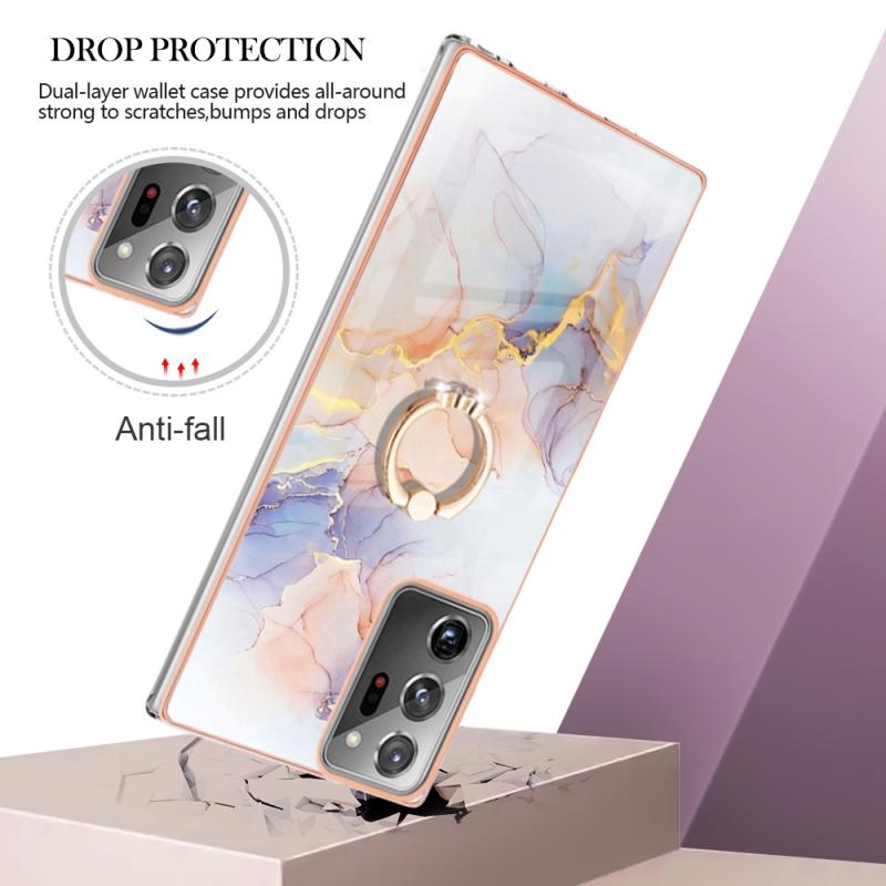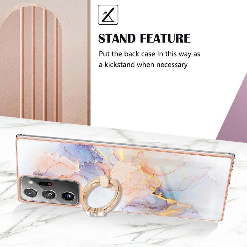 For Samsung Galaxy Note20 Ultra Electroplating IMD TPU Phone Case with Ring(White Marble)