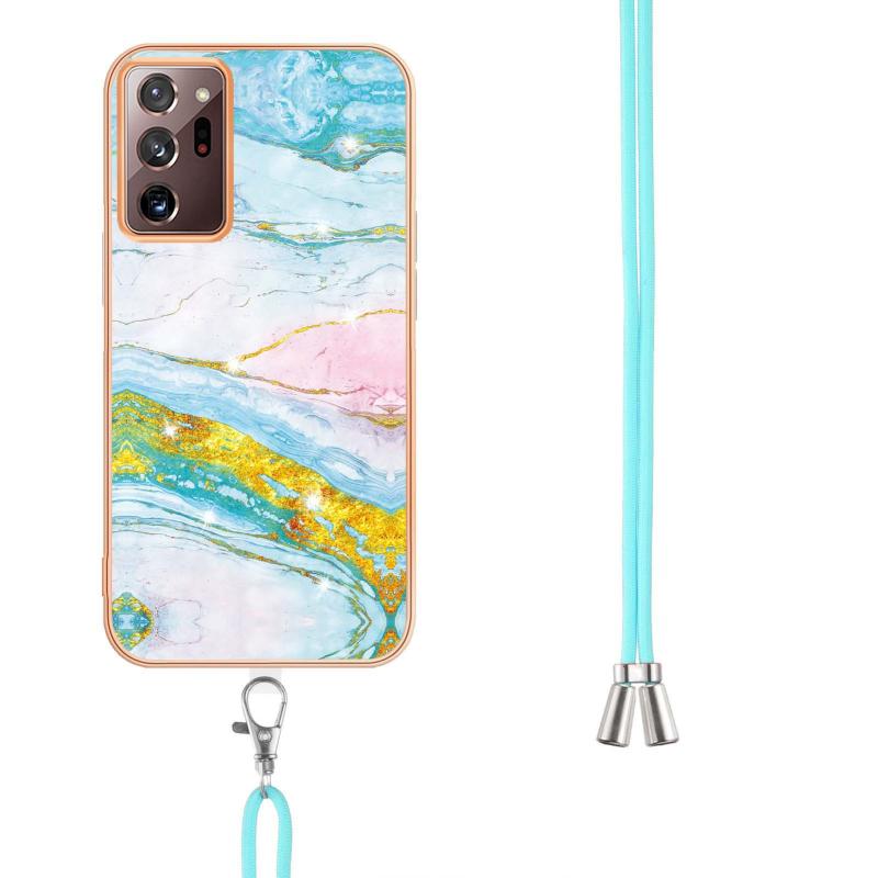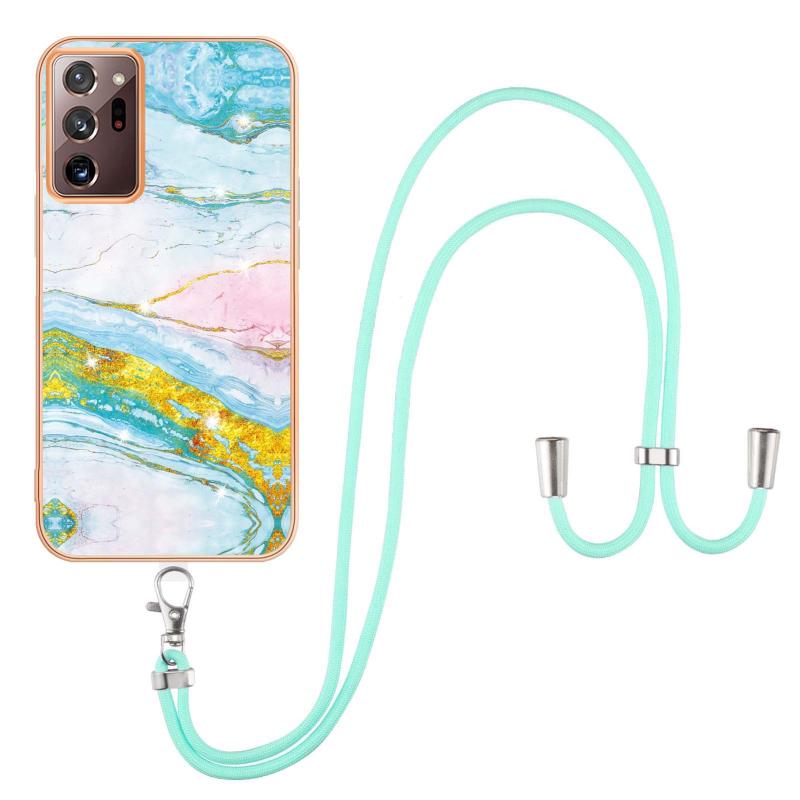 For Samsung Galaxy Note20 Ultra Electroplating Marble IMD TPU Phone Case with Lanyard(Green 004)