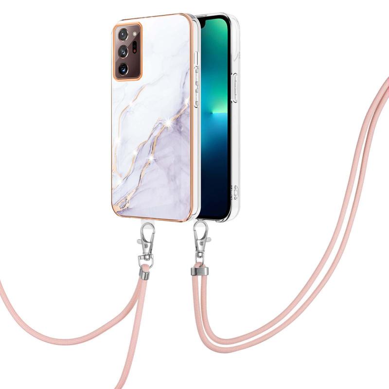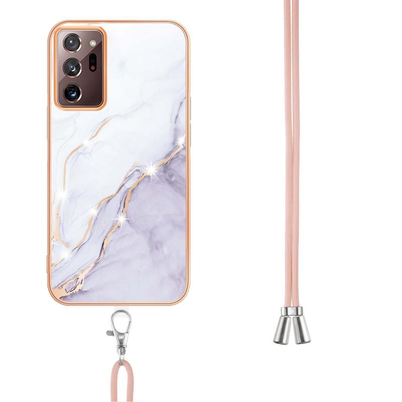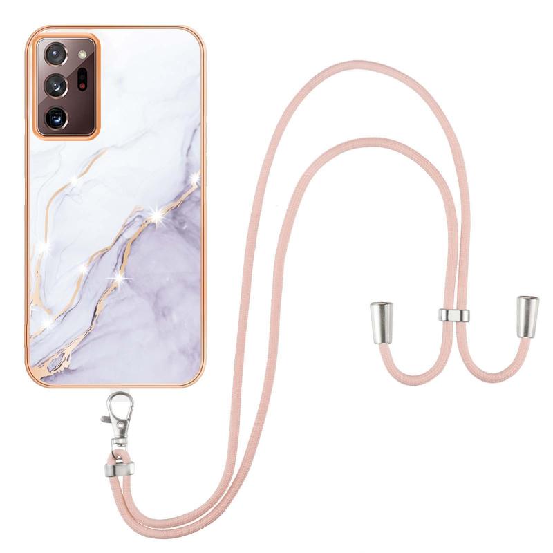 For Samsung Galaxy Note20 Ultra Electroplating Marble IMD TPU Phone Case with Lanyard(White 006)