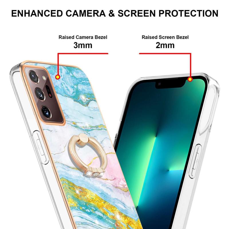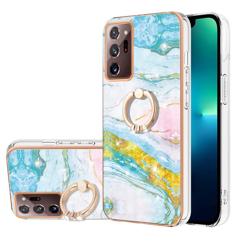 For Samsung Galaxy Note20 Ultra Electroplating Marble IMD TPU Phone Case with Ring Holder(Green 004)