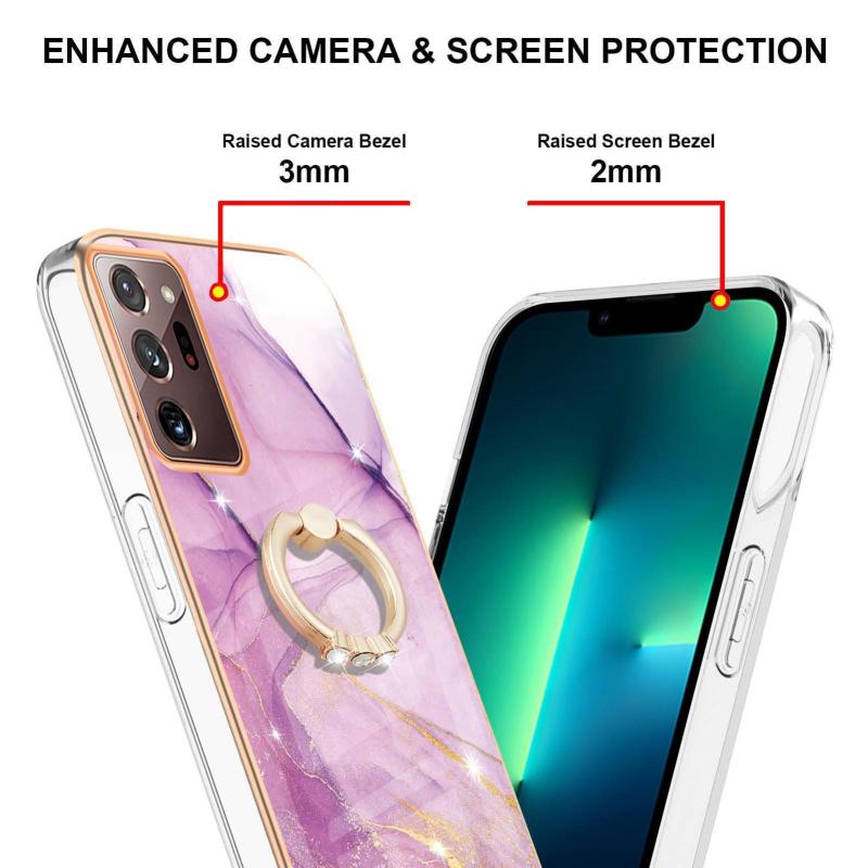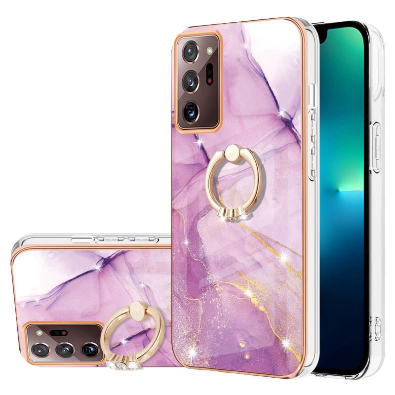 For Samsung Galaxy Note20 Ultra Electroplating Marble IMD TPU Phone Case with Ring Holder(Purple 001)