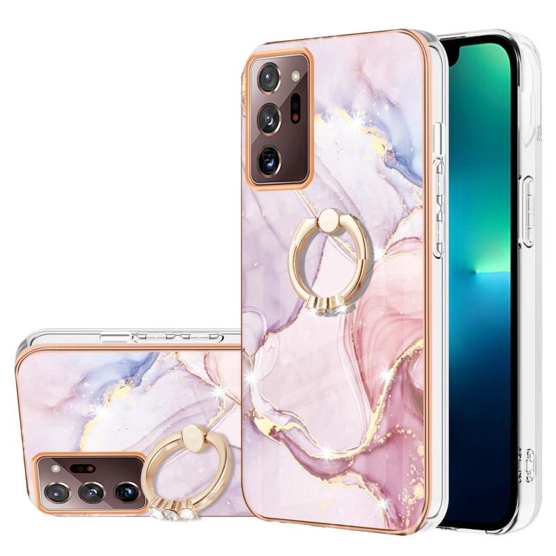 For Samsung Galaxy Note20 Ultra Electroplating Marble IMD TPU Phone Case with Ring Holder(Rose Gold 005)