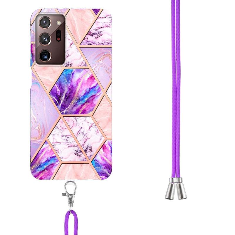 For Samsung Galaxy Note20 Ultra Electroplating Splicing Marble TPU Phone Case with Lanyard(Light Purple)