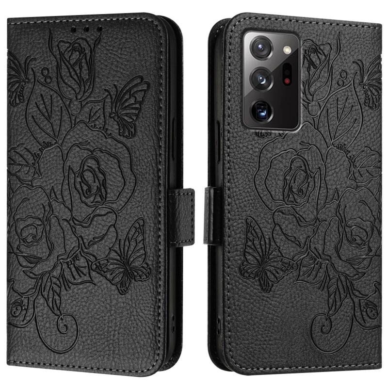 For Samsung Galaxy Note20 Ultra Embossed Rose RFID Anti-theft Leather Phone Case(Black)