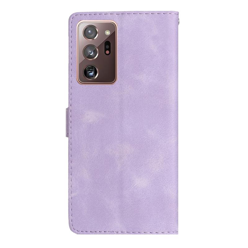 For Samsung Galaxy Note20 Ultra Flower Butterfly Embossing Pattern Leather Phone Case(Purple)