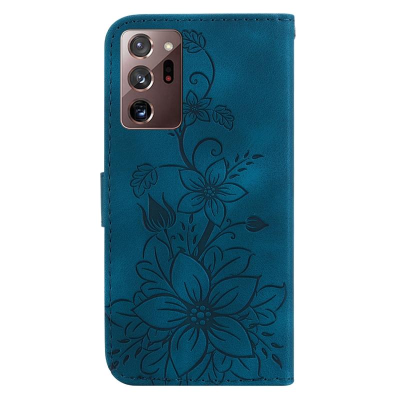 For Samsung Galaxy Note20 Ultra Lily Embossed Leather Phone Case(Dark Blue)