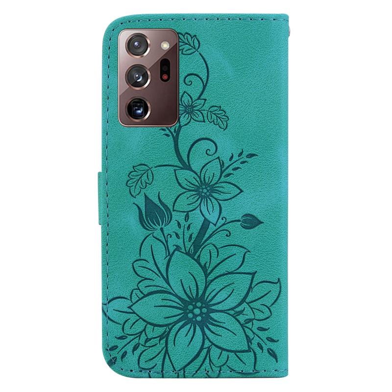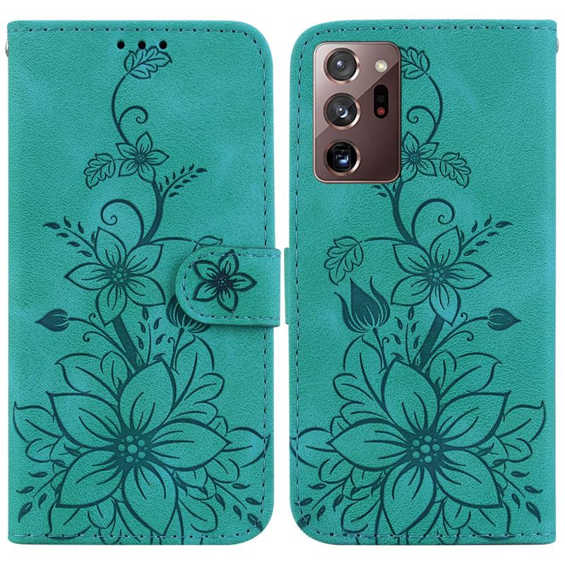 For Samsung Galaxy Note20 Ultra Lily Embossed Leather Phone Case(Green)