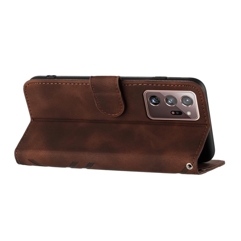 For Samsung Galaxy Note20 Ultra Line Pattern Skin Feel Leather Phone Case(Coffee)