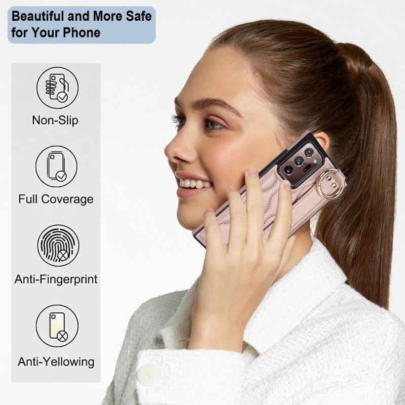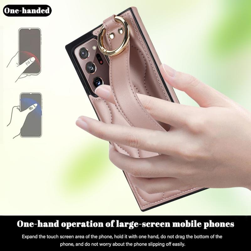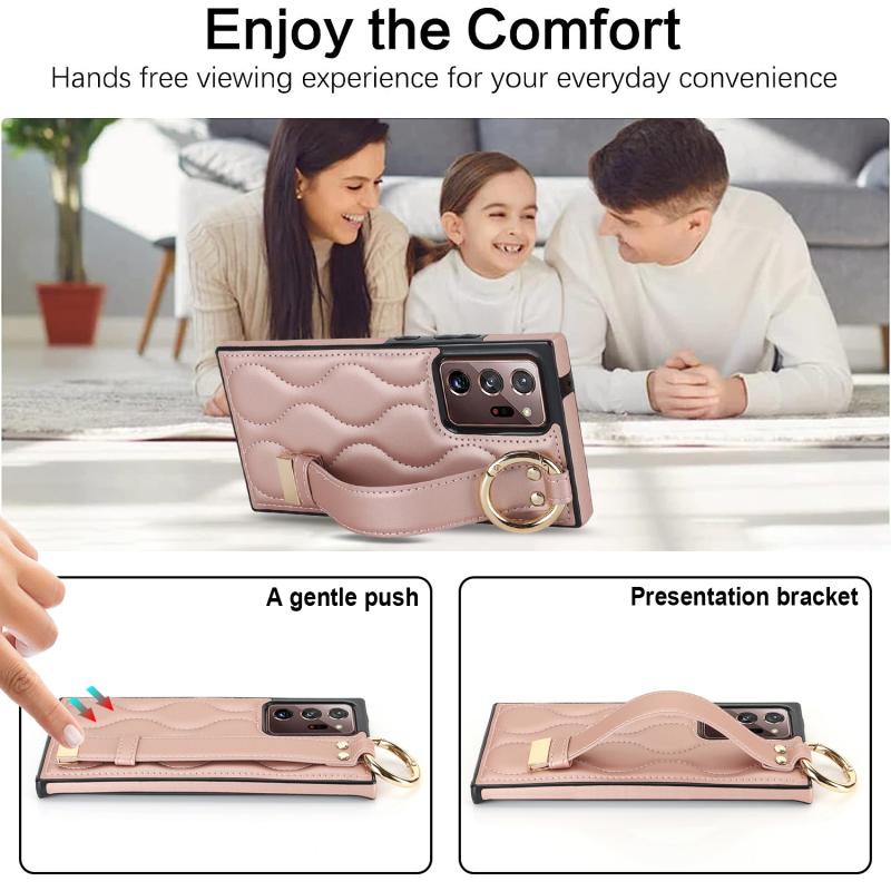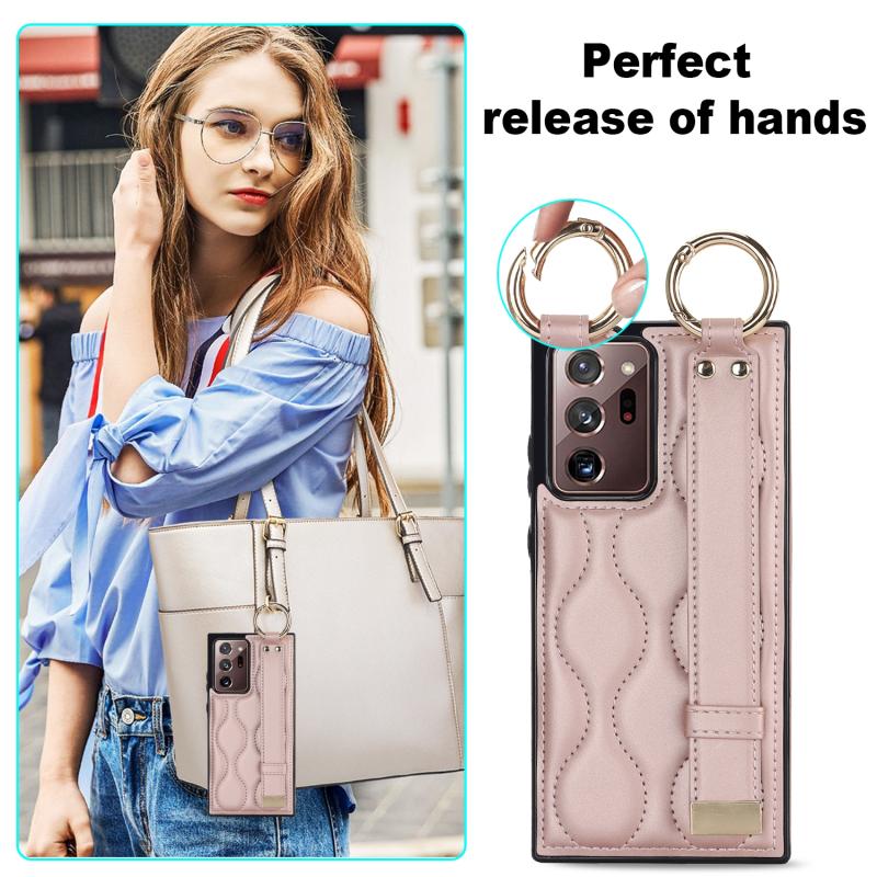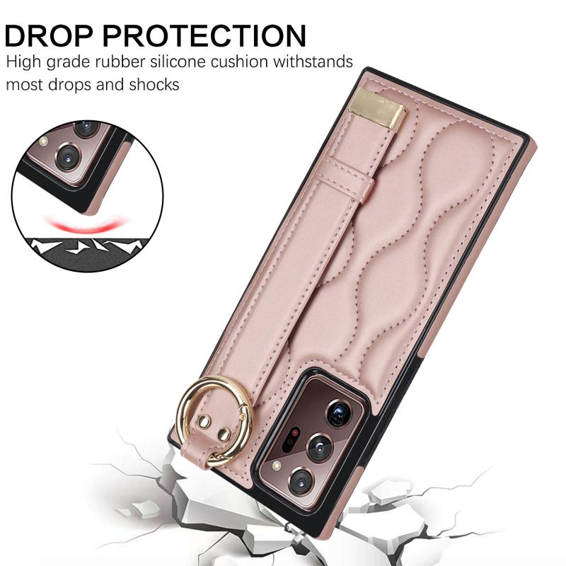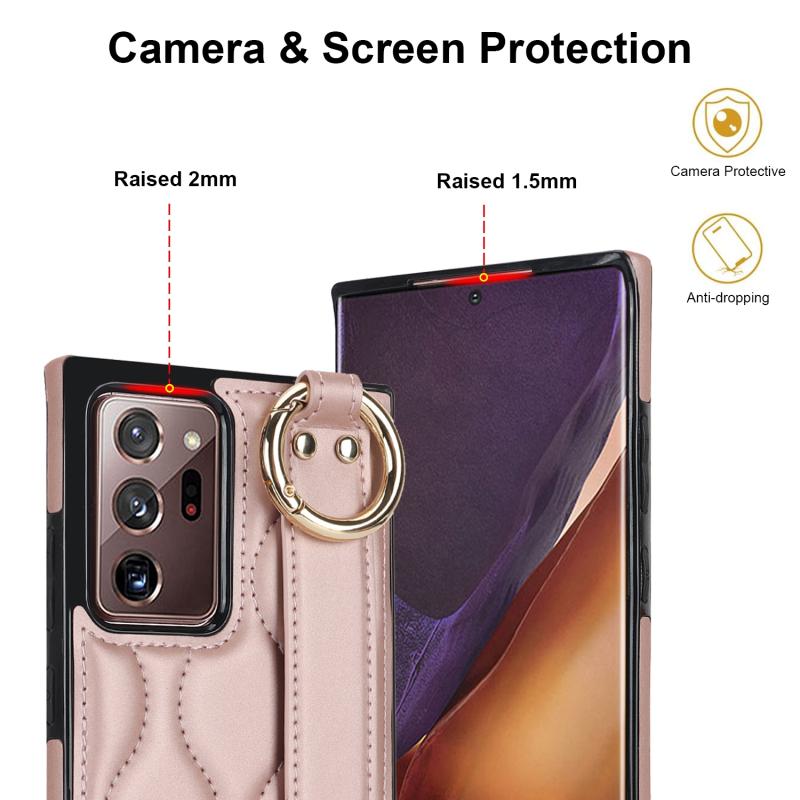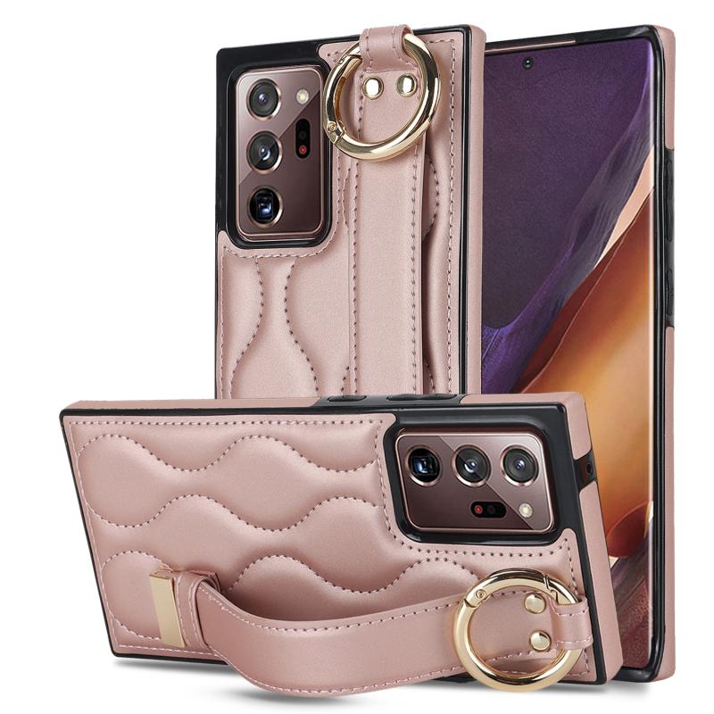 For Samsung Galaxy Note20 Ultra Non-slip Full Coverage Ring PU Phone Case with Wristband(Rose Gold)