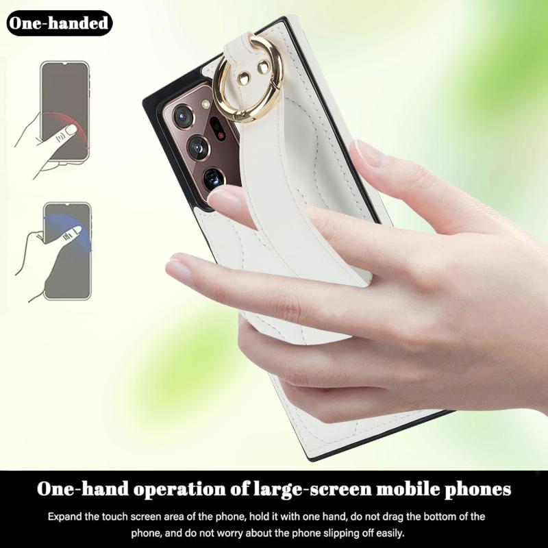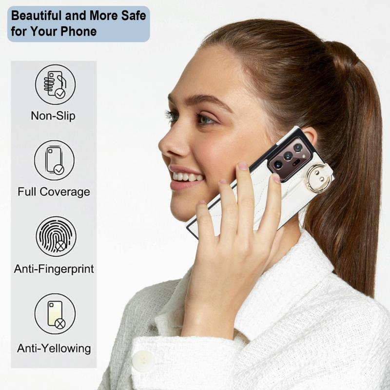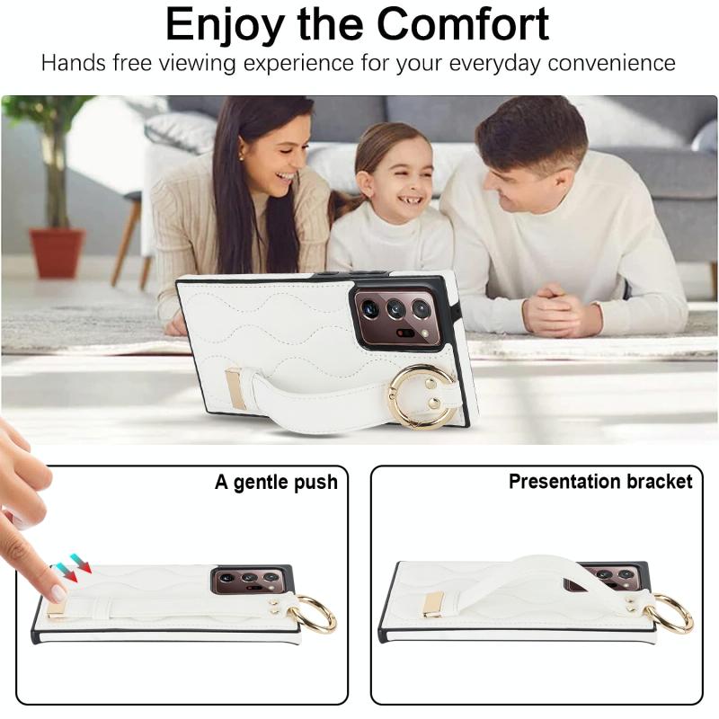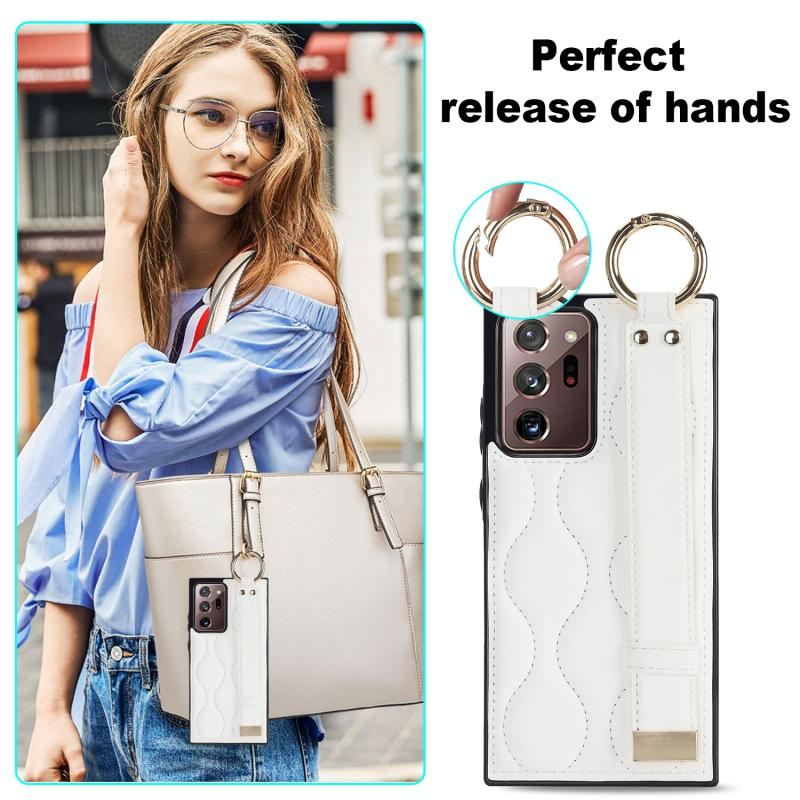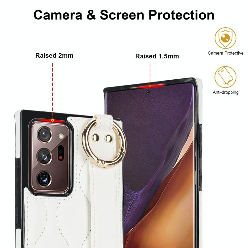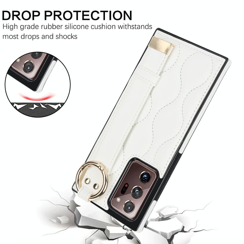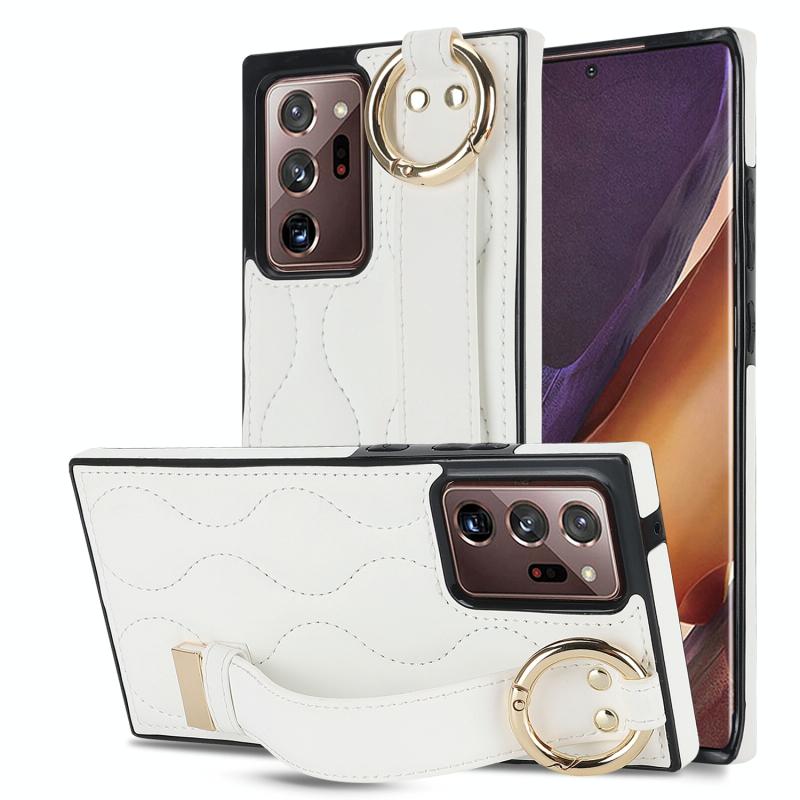 For Samsung Galaxy Note20 Ultra Non-slip Full Coverage Ring PU Phone Case with Wristband(White)