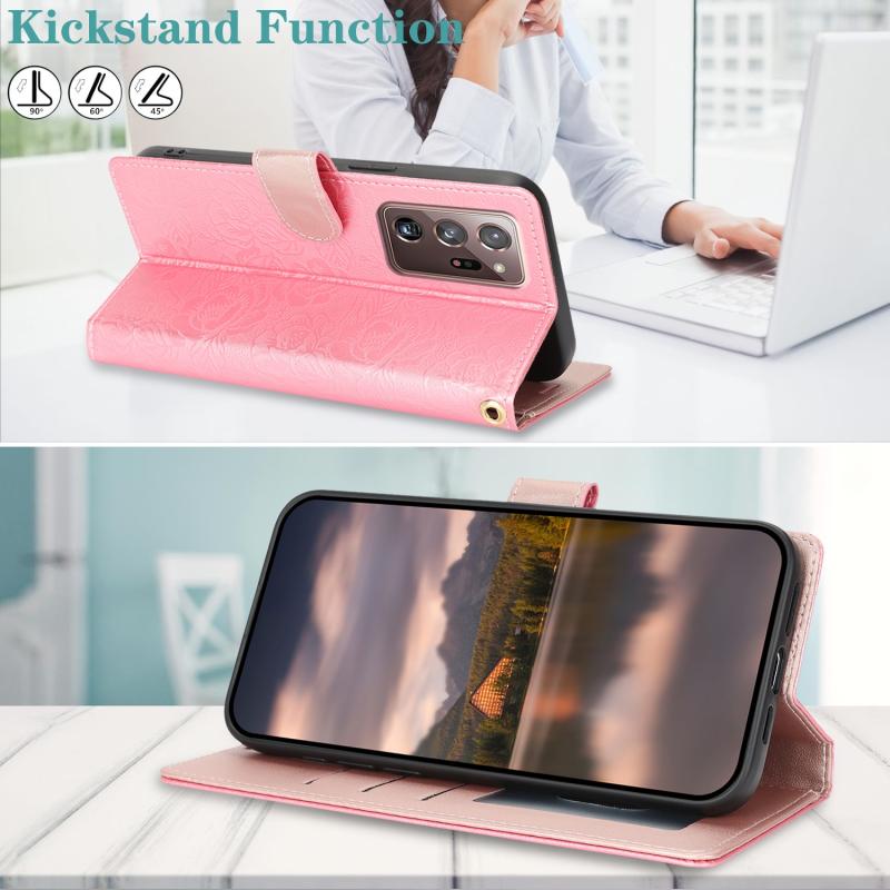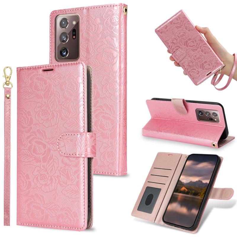 For Samsung Galaxy Note20 Ultra Peony Flowers Imprint Leather Phone Case(Pink)