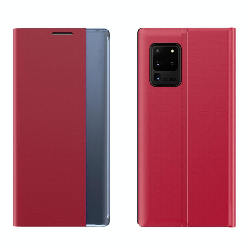 For Samsung Galaxy Note20 Ultra Plain Texture Cloth Attraction Flip Holder Leather Phone Case(Red)
