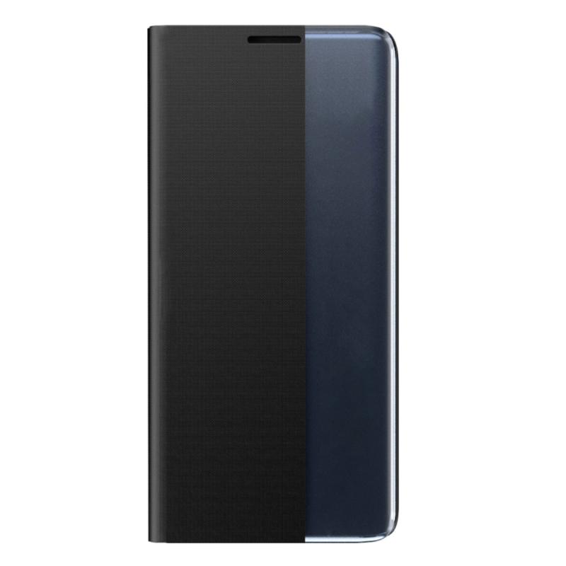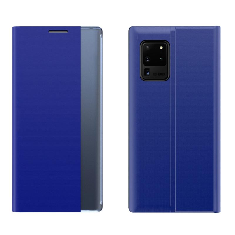 For Samsung Galaxy Note20 Ultra Plain Texture Cloth Attraction Flip Holder Leather Phone Case(Sky Blue)
