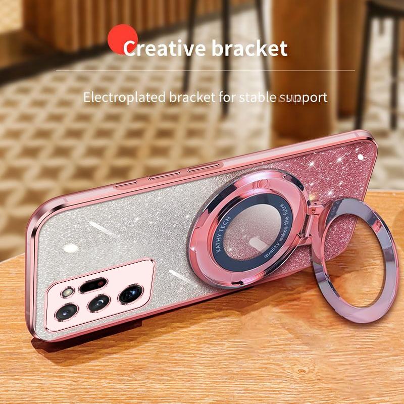 For Samsung Galaxy Note20 Ultra Plated Gradient Glitter Round Holder TPU Phone Case(Sierra Blue)