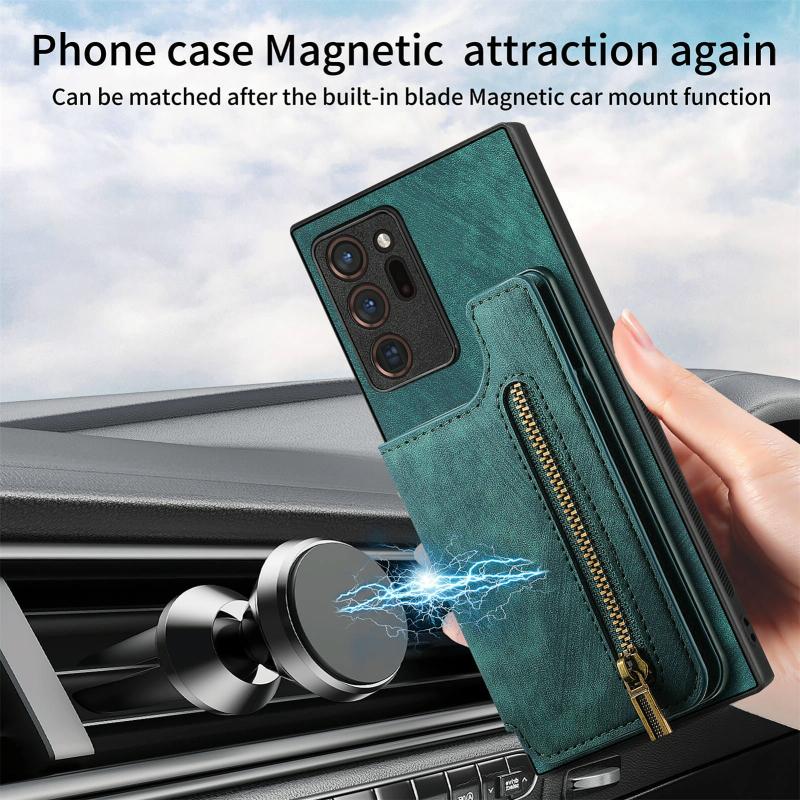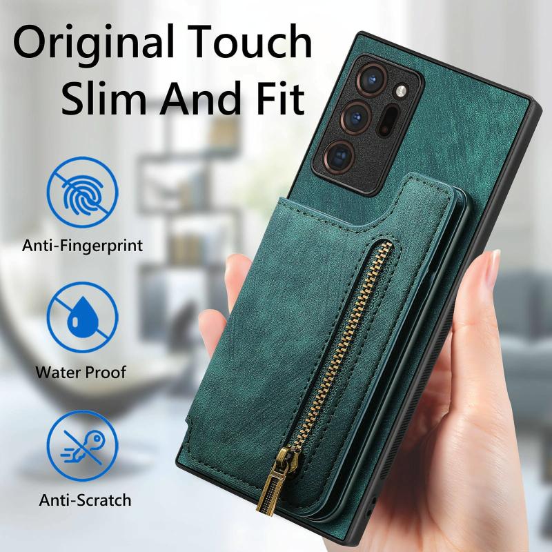 2. Zipper Wallet Function: The leather case is equipped with card slots for placing cards and a small amount of cash.