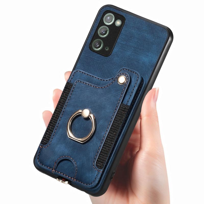 For Samsung Galaxy Note20 Ultra Retro Skin-feel Ring Multi-card Wallet Phone Case(Blue)