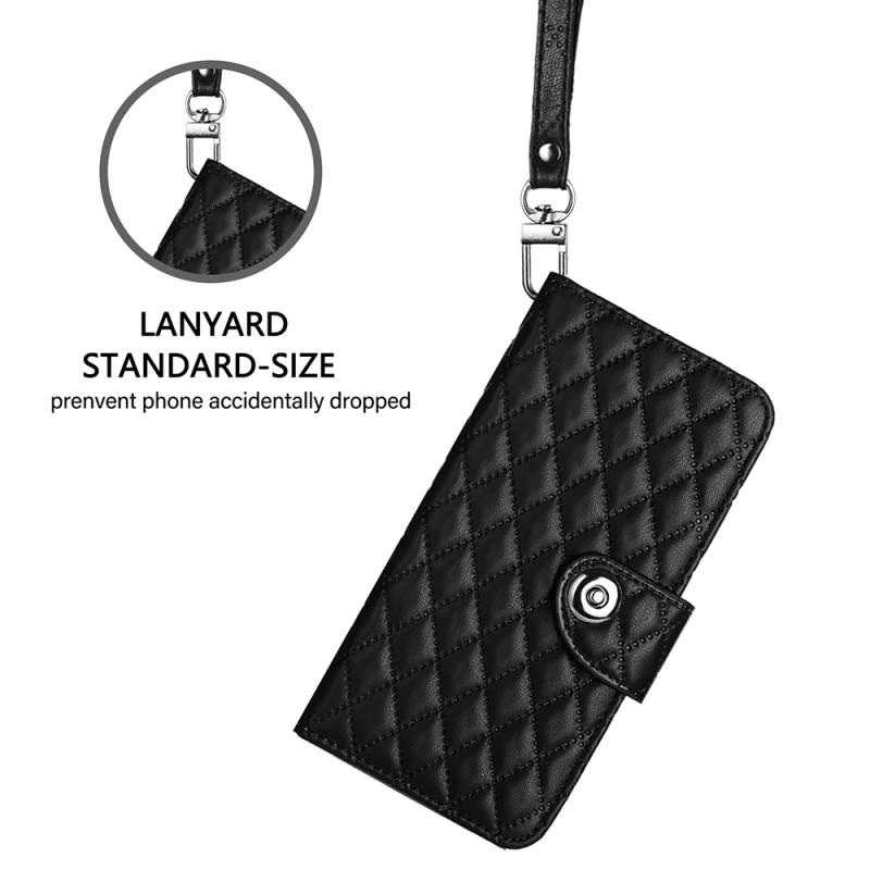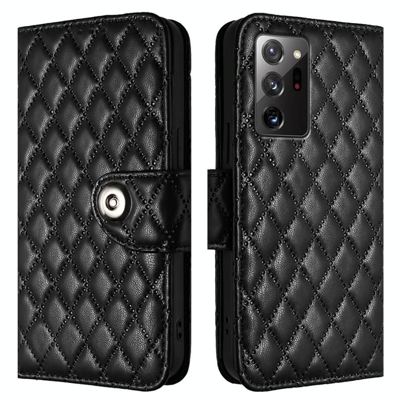 For Samsung Galaxy Note20 Ultra Rhombic Texture Flip Leather Phone Case with Lanyard(Black)