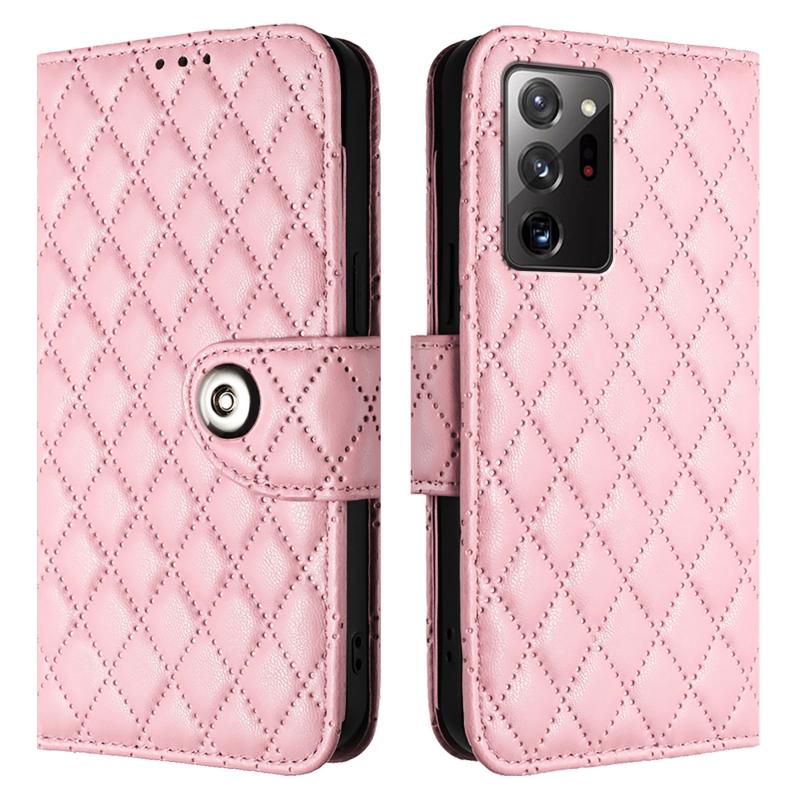 For Samsung Galaxy Note20 Ultra Rhombic Texture Flip Leather Phone Case with Lanyard(Pink)